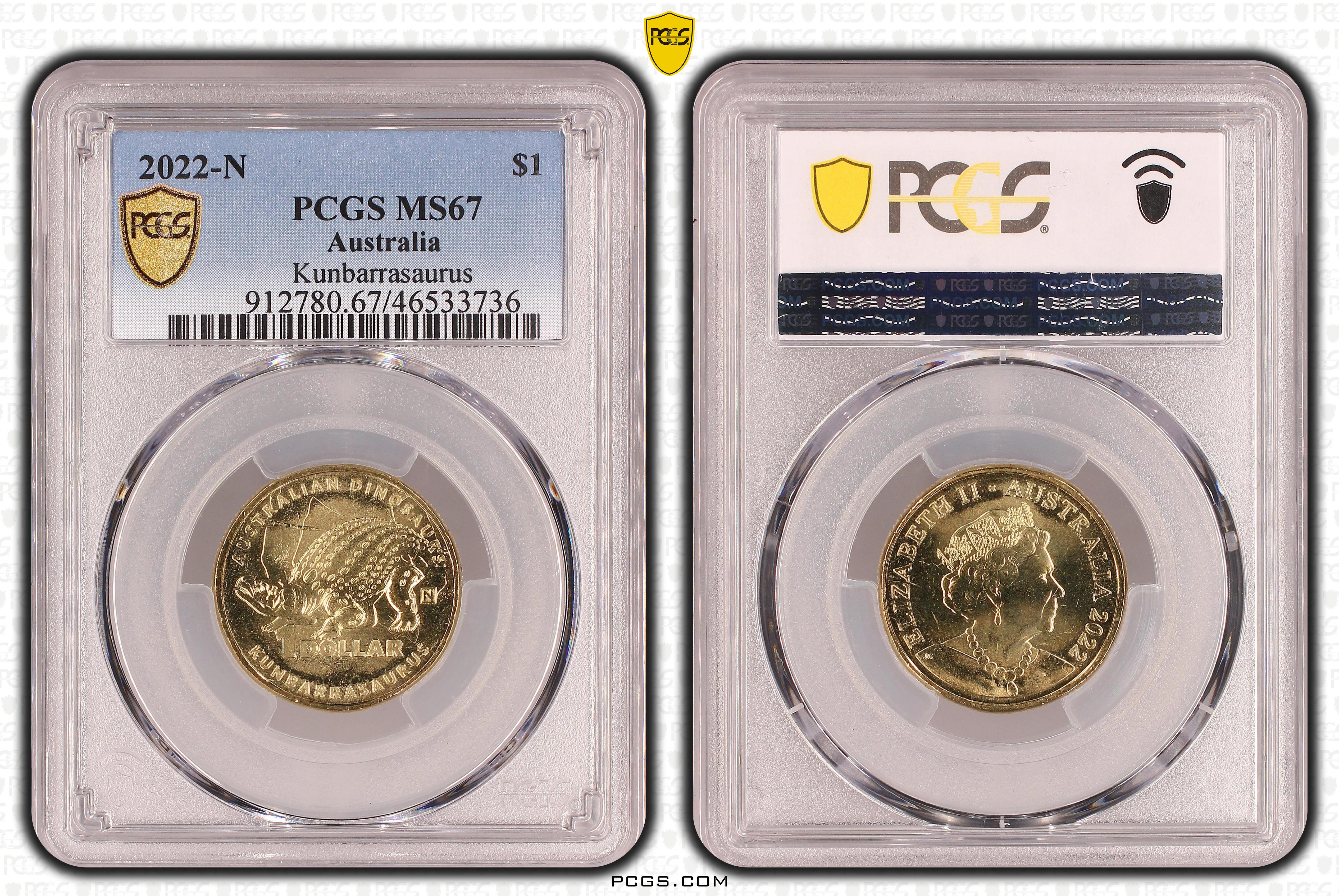 2022-N $1 Kunbarrasaurus Privy Australian Dinosaurs MS67 认证号46533736, PCGS号912780