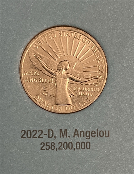 The first American Woman Quarter Program issued in the year 2022, was the Maya Angelou Quarter. The Mint began accepting orders for the Maya Angelou Quarter bags and rolls on February 07, 2022. It offered the following coin options -