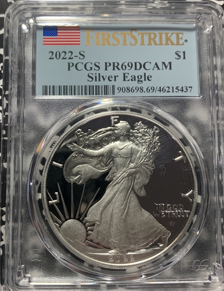 2022-S $1 Silver Eagle First Strike, DCAM PR69DCAM 认证号46215437, PCGS号908698