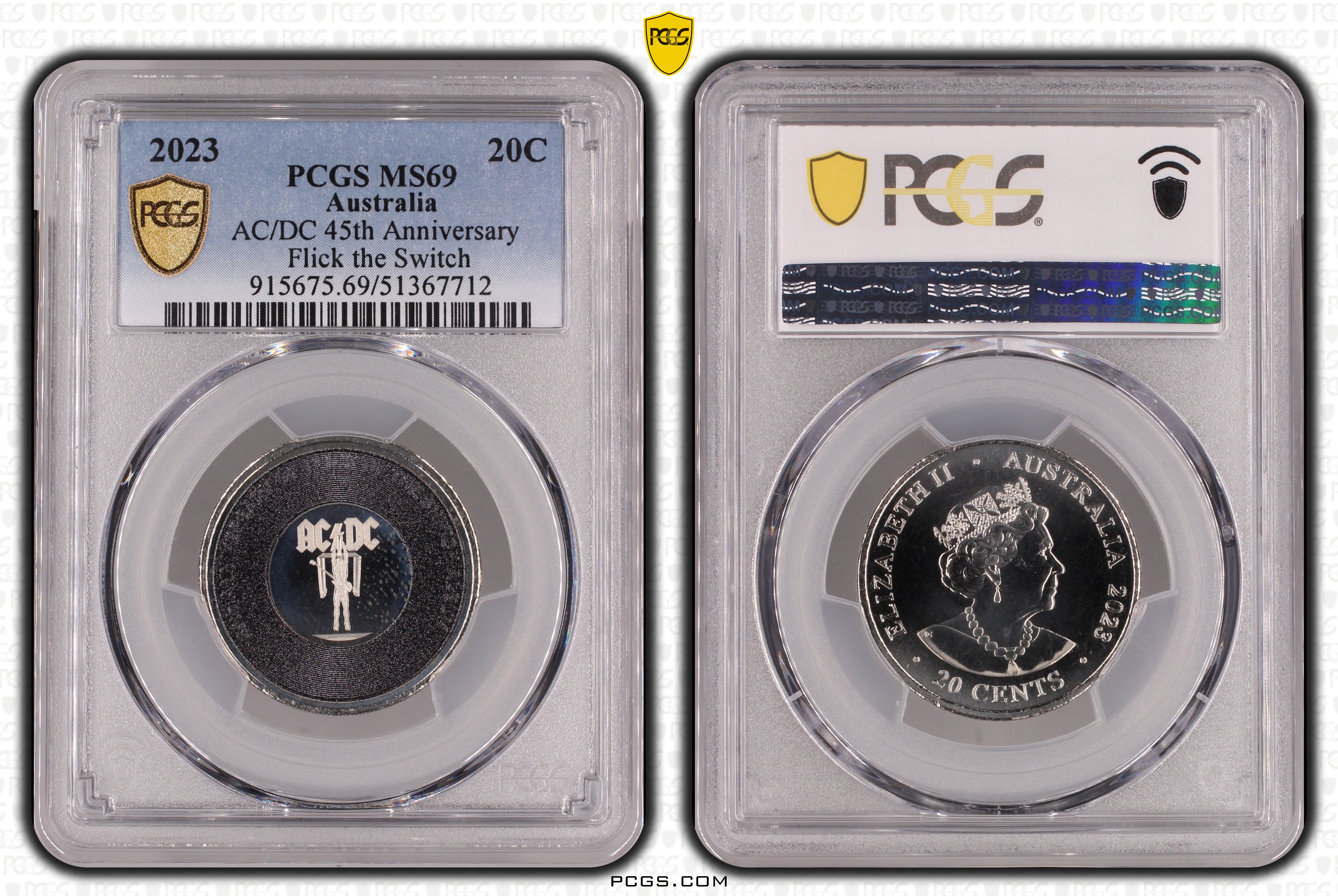 2023 20C AC/DC 45th Anniversary Flick the Switch MS69 认证号51367712, PCGS号915675