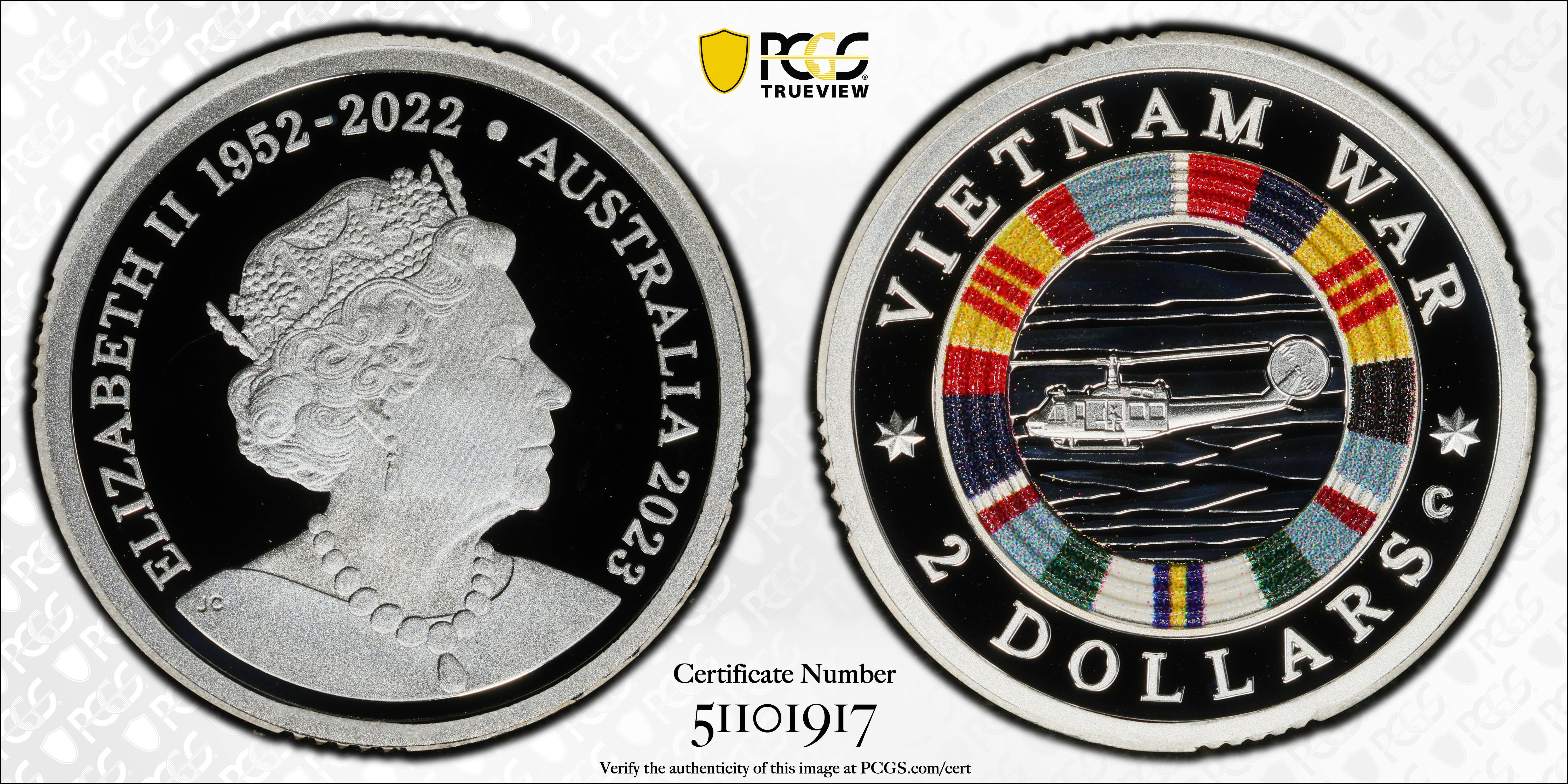 2023-C $2 Vietnam War Colorized Ag, DCAM PR70DCAM 认证号51101917, PCGS号921893