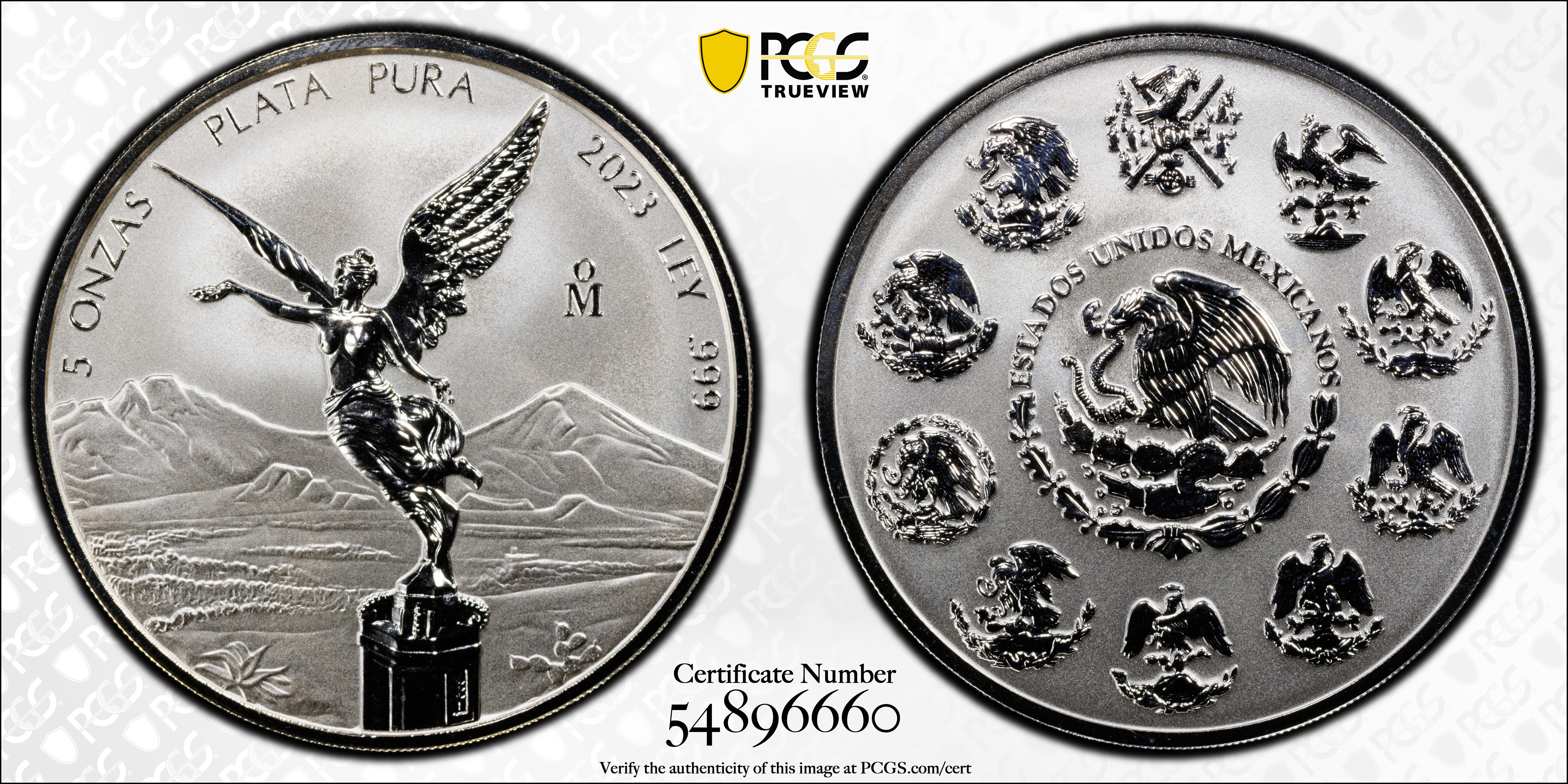 2023-Mo 5 Onza Libertad Ag Rev PR PR67 认证号54896660, PCGS号933435