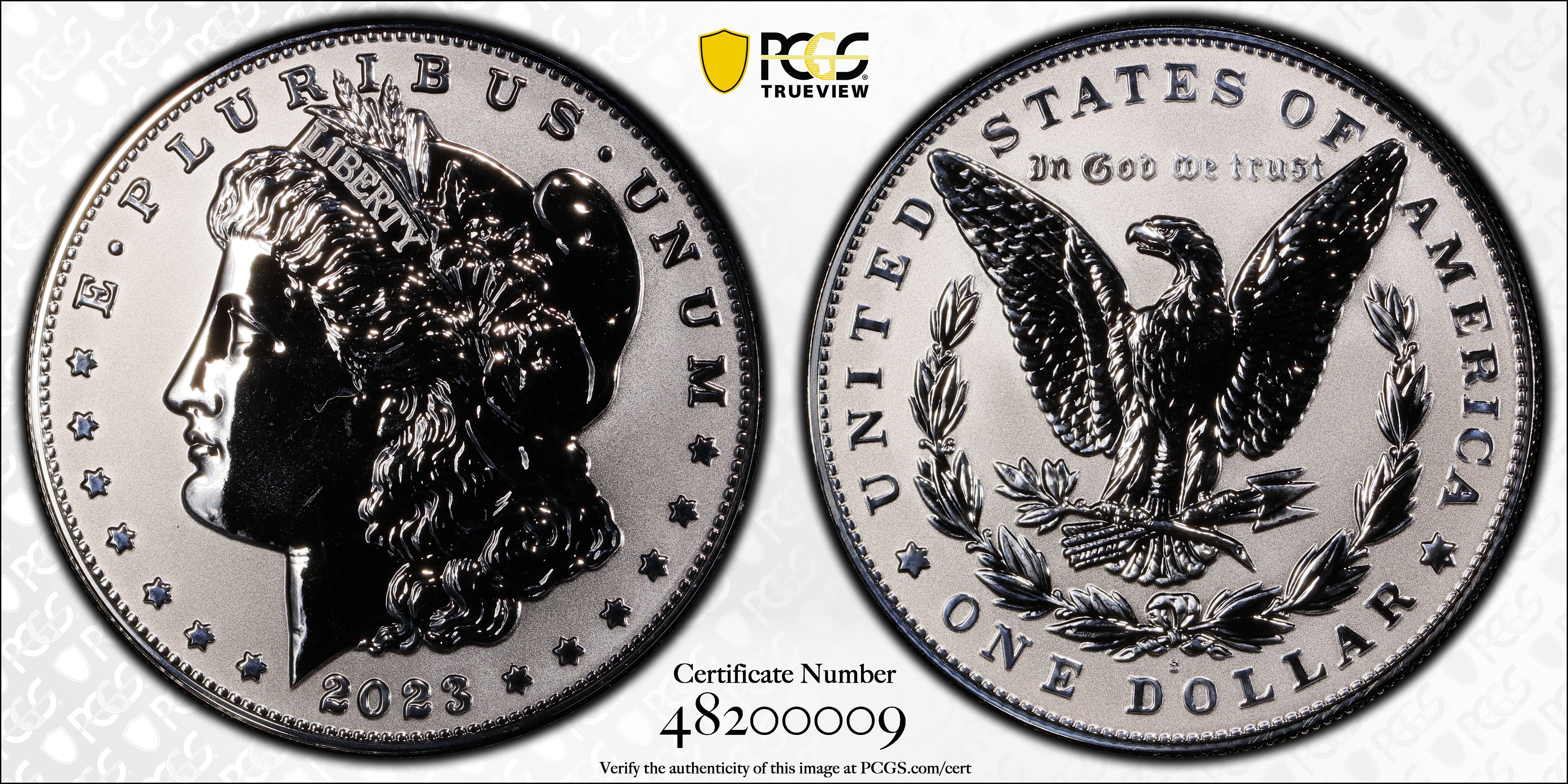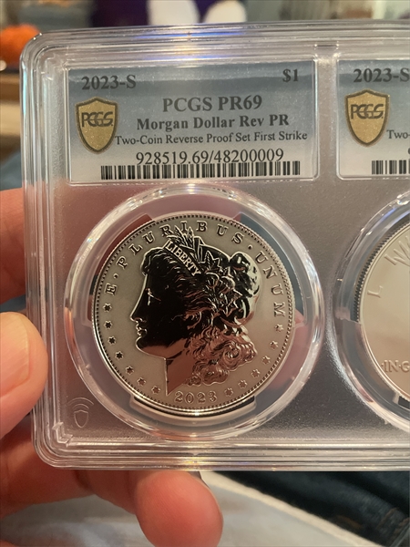 2023-S $1 Morgan Dollar Rev PR Two-Coin Reverse Proof Set First Strike PR69 认证号48200009, PCGS号928519