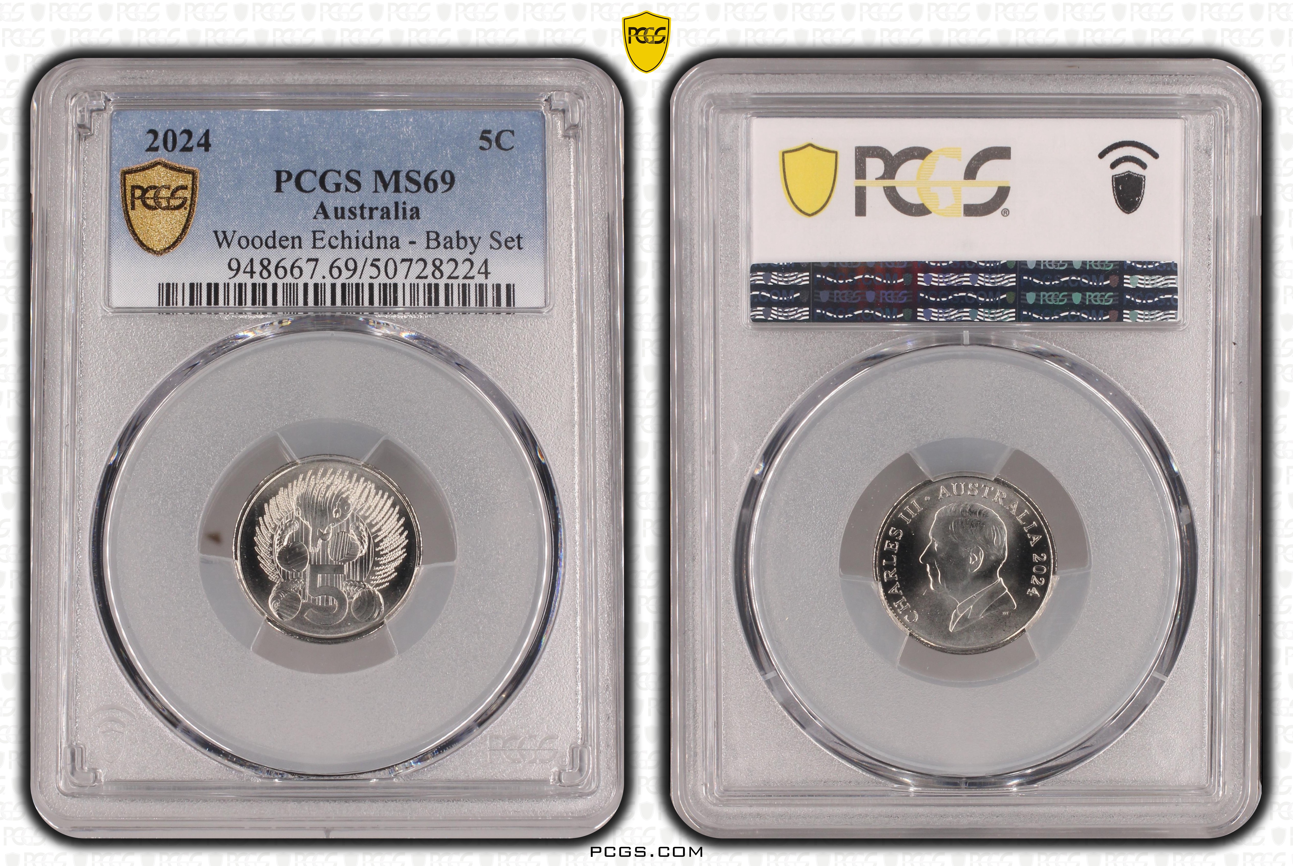 2024 5C Wooden Echidna - Baby Set MS69 认证号50728224, PCGS号948667