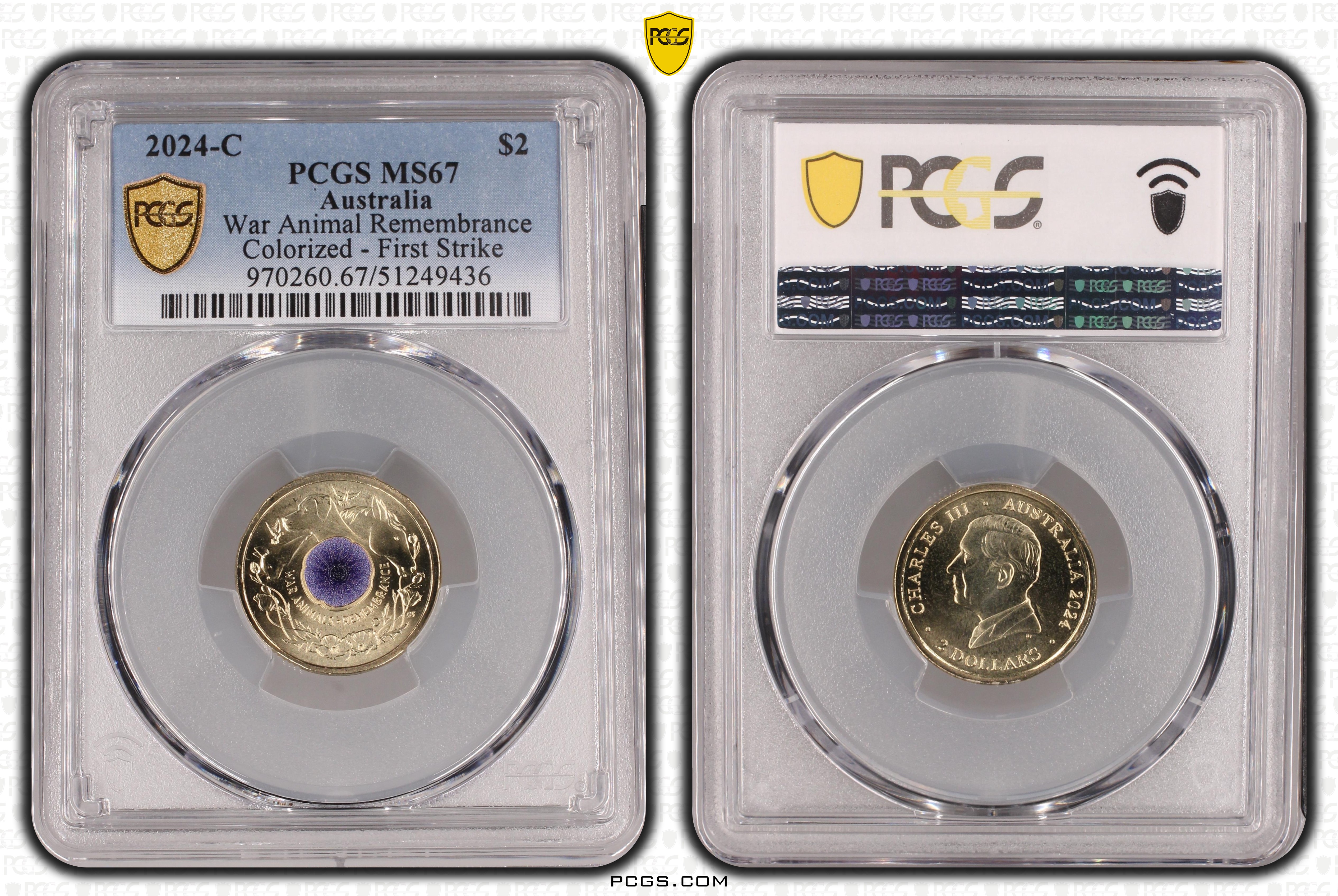 2024-C $2 War Animal Remembrance Colorized - First Strike MS67 认证号51249436, PCGS号970260