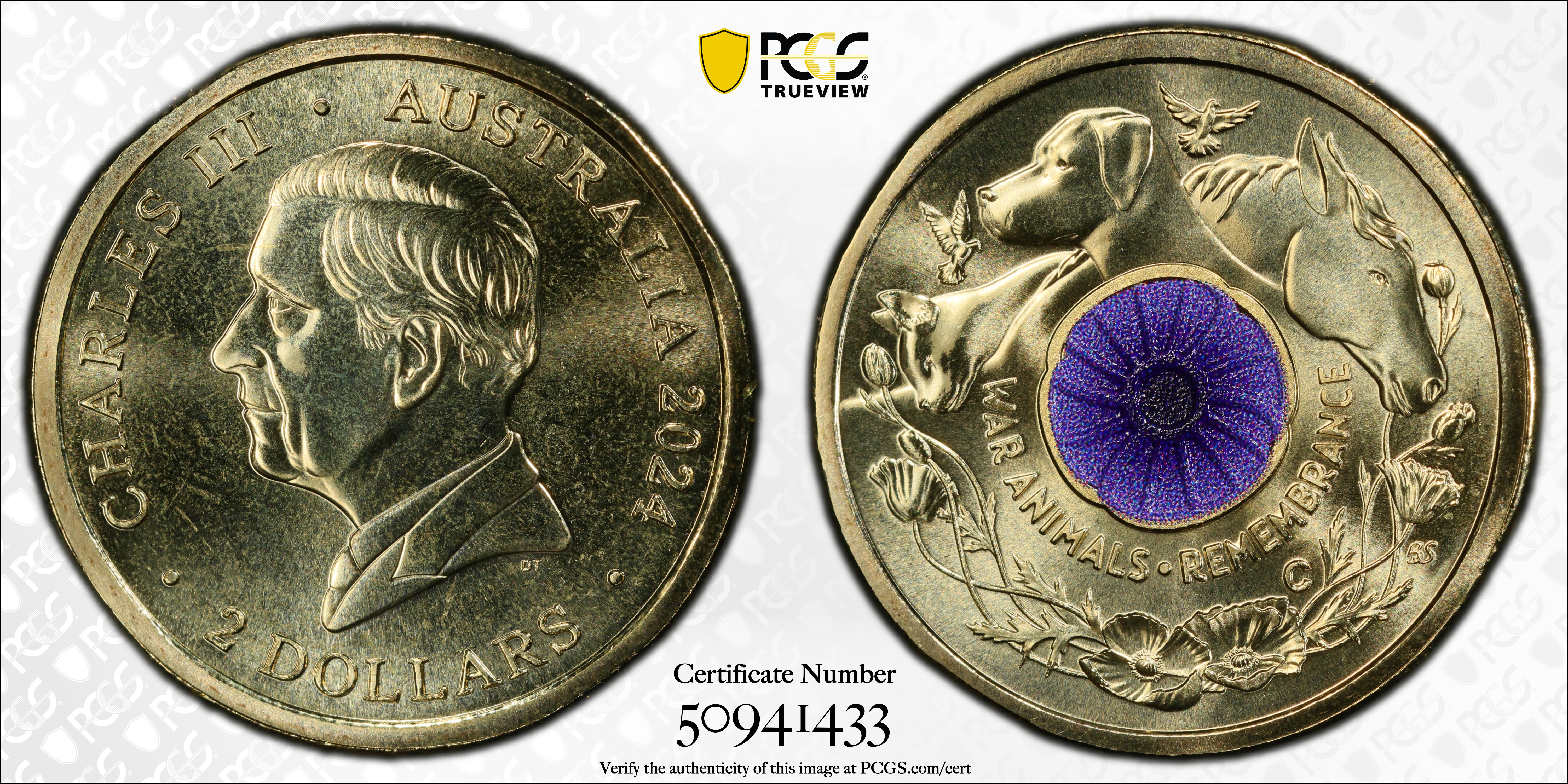 2024-C $2 War Animal Remembrance Colorized MS68 认证号50941433, PCGS号968377
