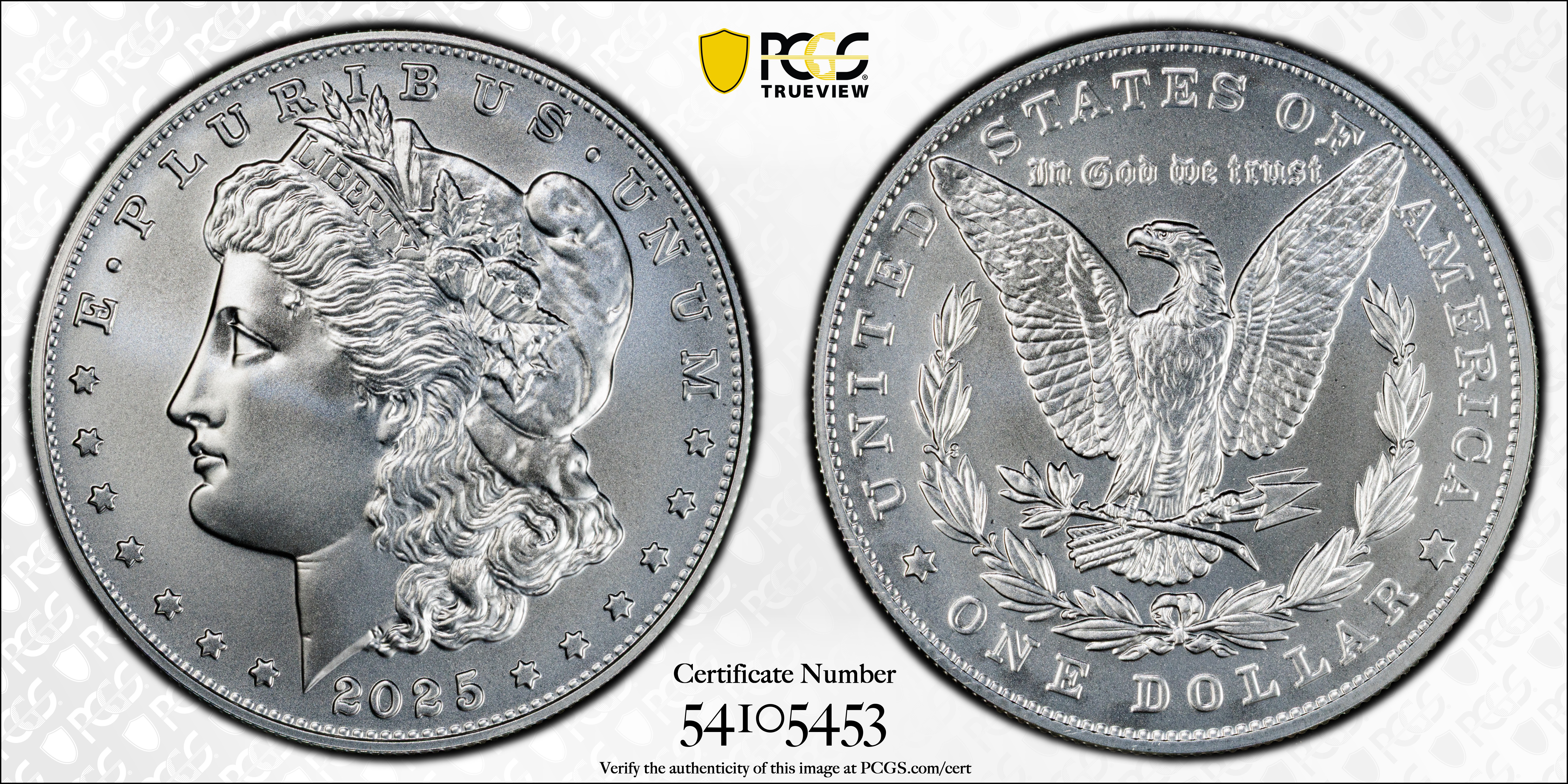 2025 $1 Morgan Dollar First Strike MS70 认证号54105453, PCGS号994434