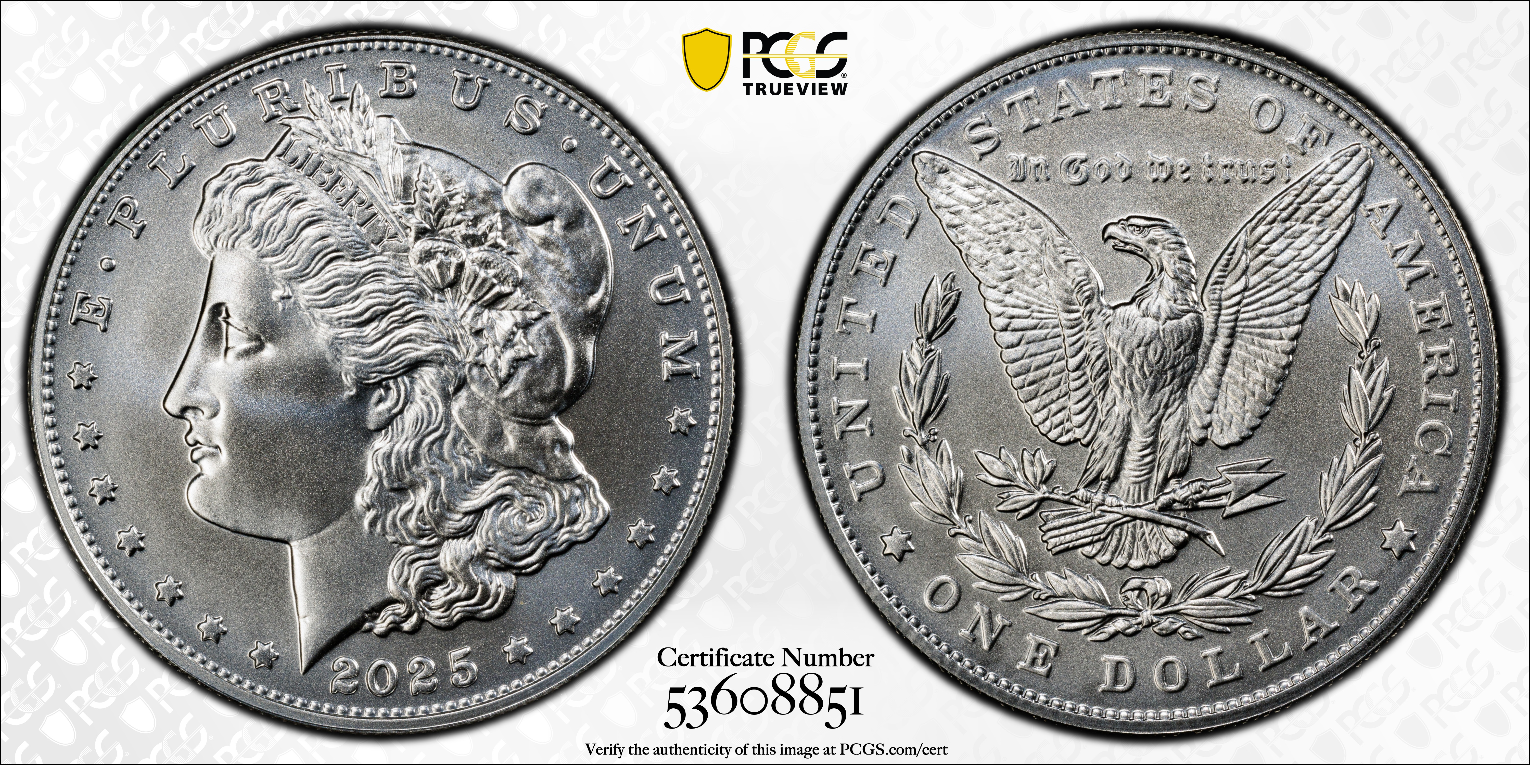 2025 $1 Morgan Dollar MS70 认证号53608851, PCGS号990081