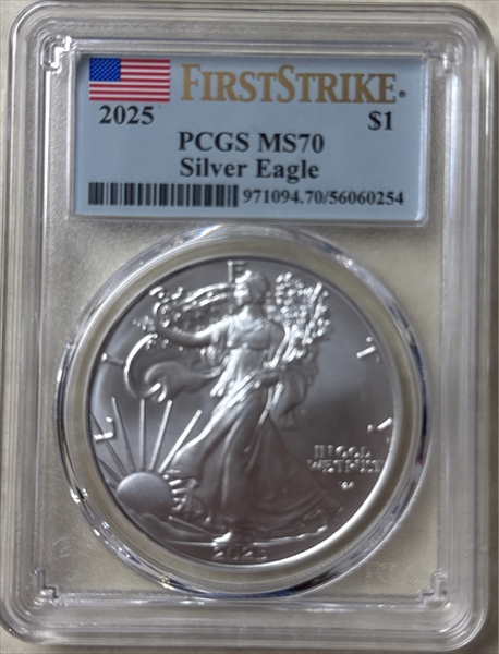 2025 $1 Silver Eagle First Strike MS70 认证号56060254, PCGS号971094