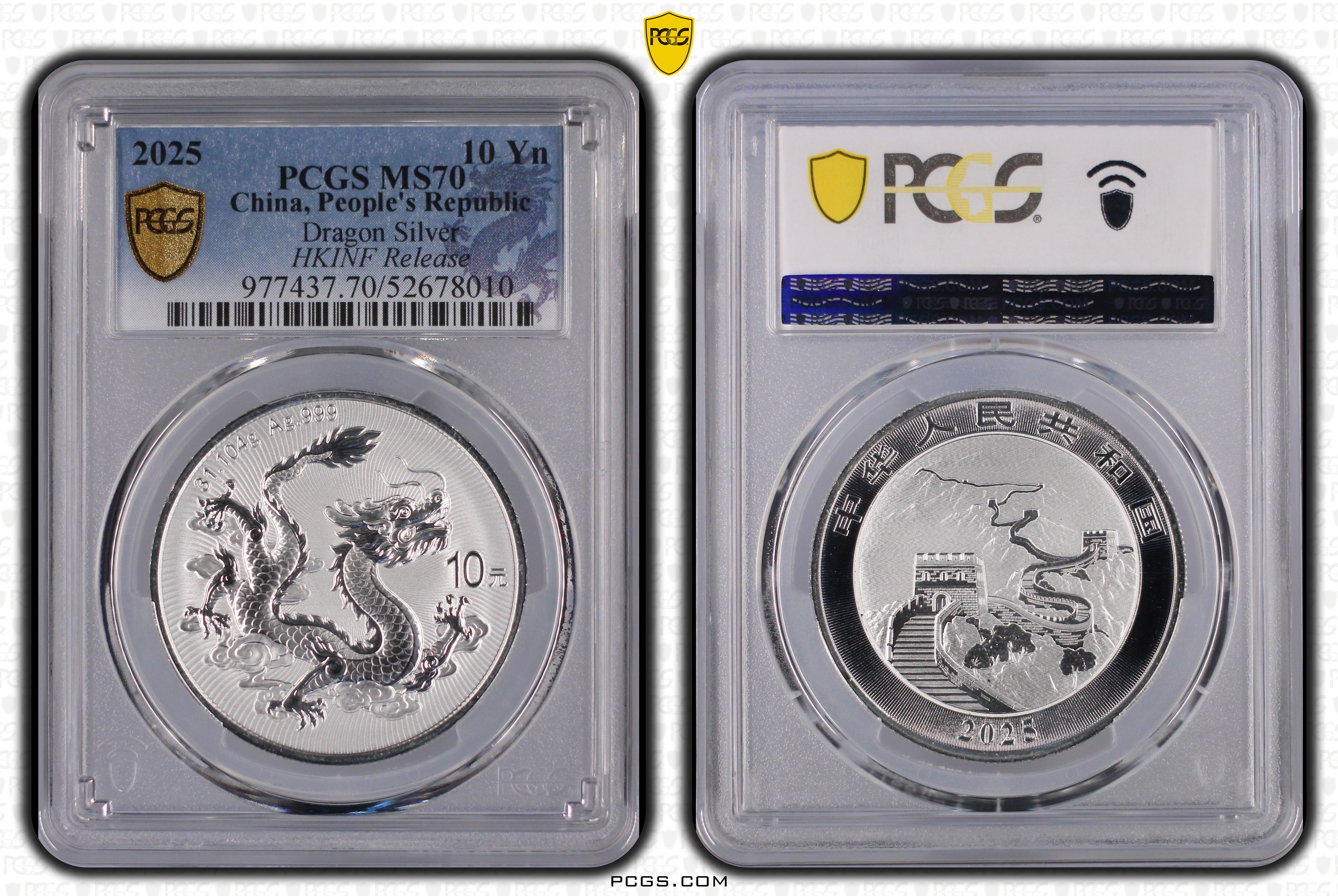 2025 10 Yn Dragon Silver MS70 认证号52678010, PCGS号977437