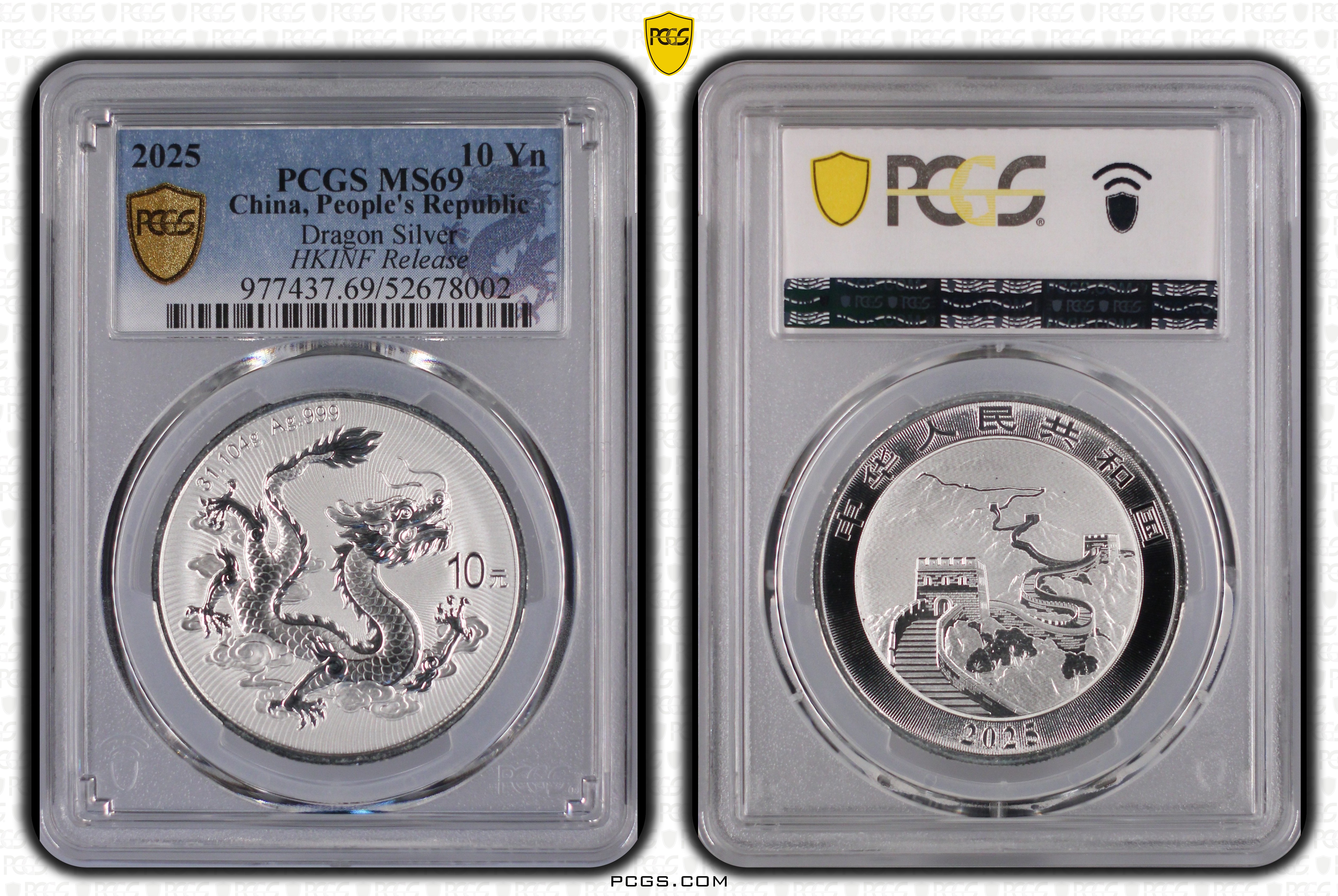 2025 10 Yn Dragon Silver MS69 认证号52678002, PCGS号977437