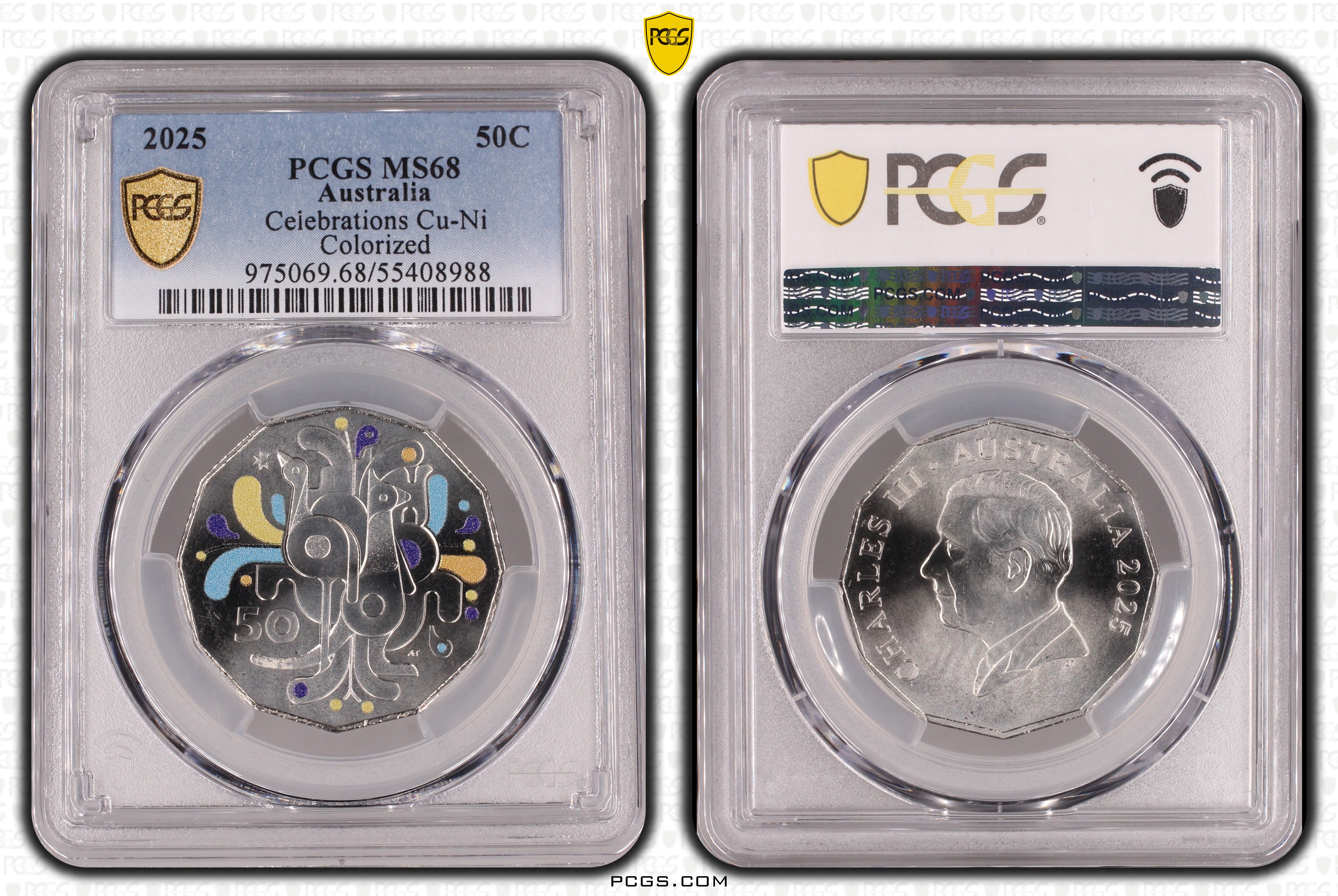 2025 50C Celebrations Cu-Ni Colorized MS68 认证号55408988, PCGS号975069