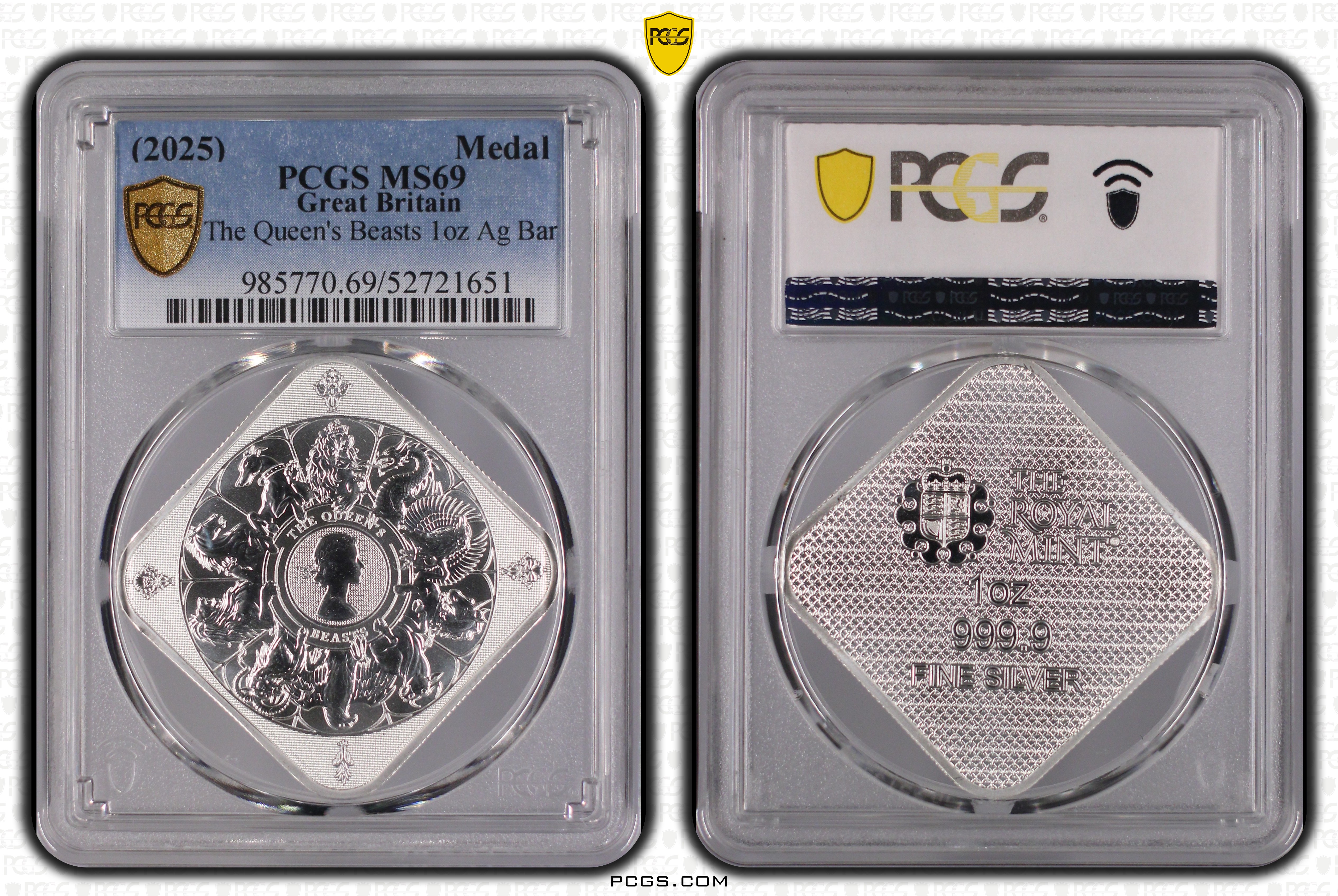 (2025) Medal The Queen's Beasts 1oz Ag Bar MS69 认证号52721651, PCGS号985770