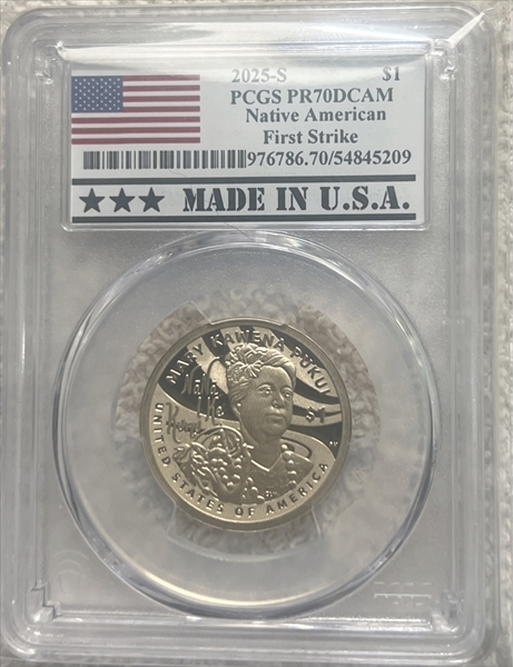 2025-S $1 Native American First Strike, DCAM PR70DCAM 认证号54845209, PCGS号976786
