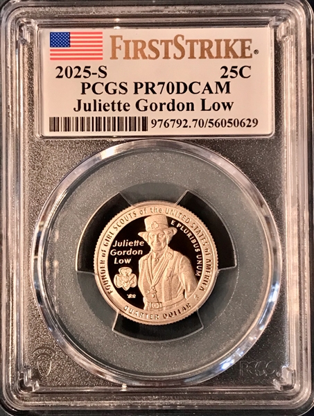 2025-S 25C Juliette Gordon Low First Strike, DCAM PR70DCAM 认证号56050629, PCGS号976792
