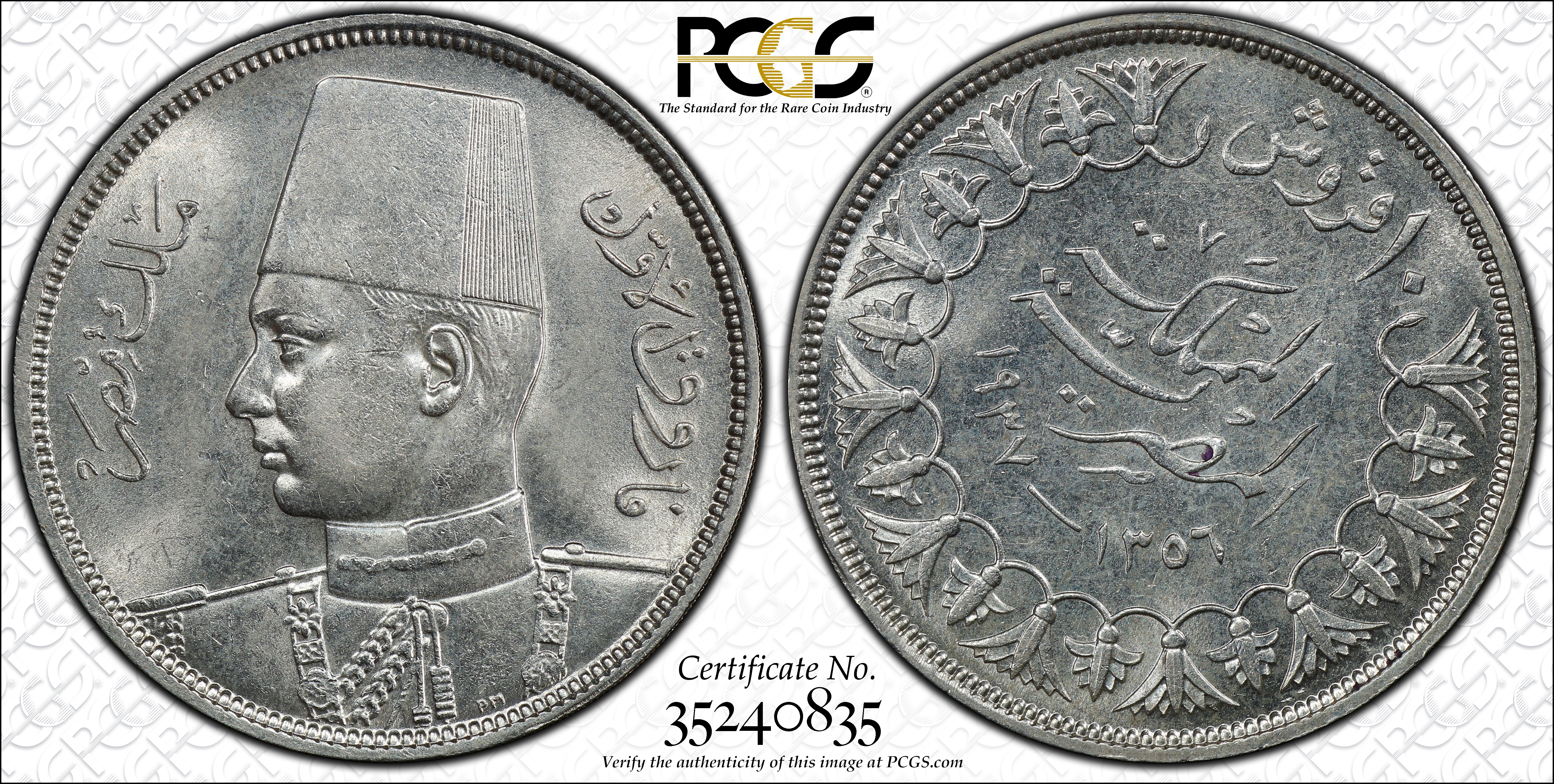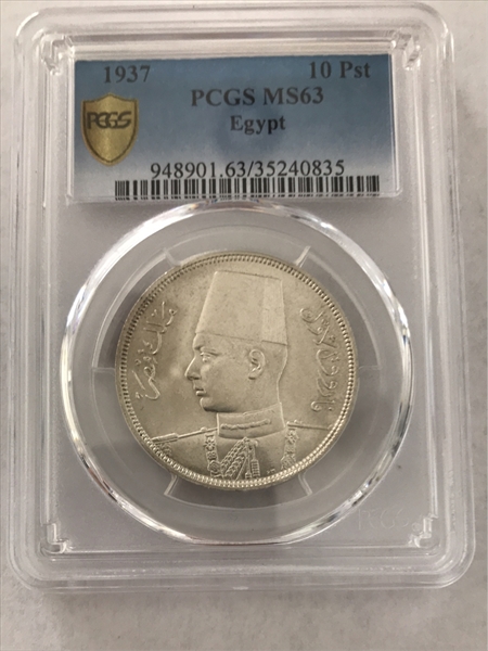 AH1356-1937 10 Pst KM-367 Ag MS63 认证号35240835, PCGS号948901