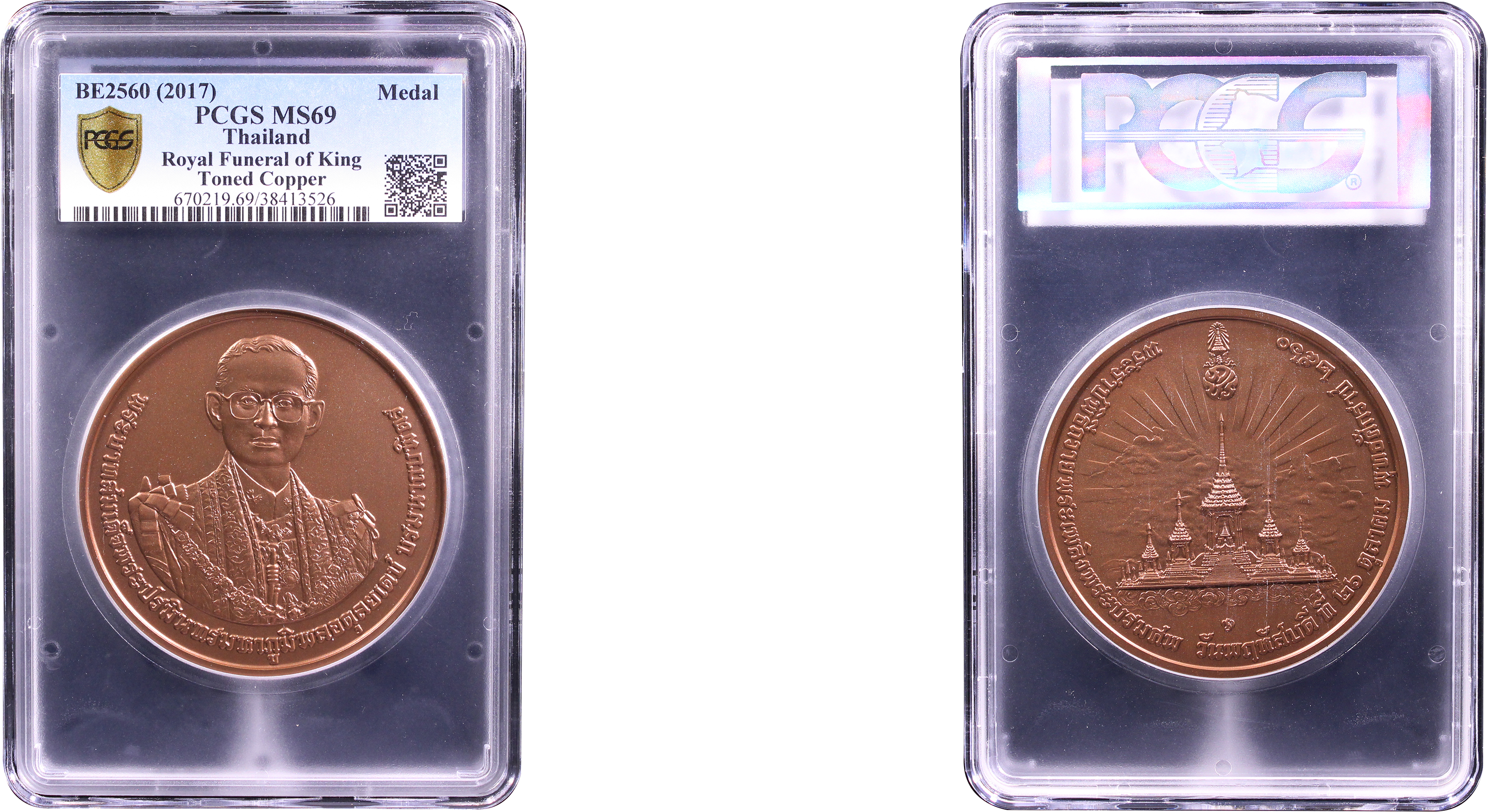 BE2560 (2017) Medal Royal Funeral of King Antiqued Copper MS69 认证号38413526, PCGS号670219
