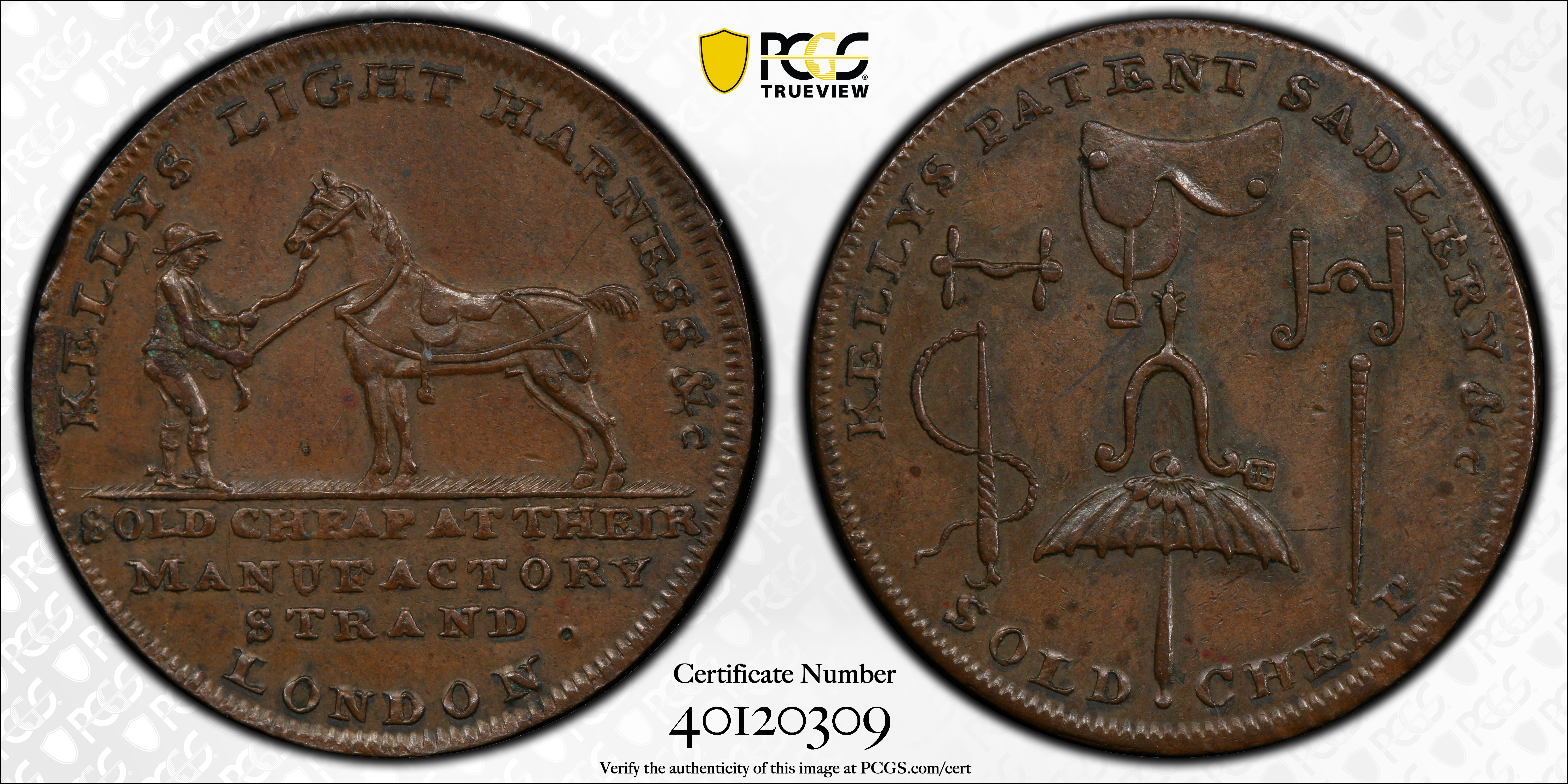 (c.1790) Tk 1/2D DH-345 Middlesex, Kelly's, BN AU58BN 认证号40120309, PCGS号526373