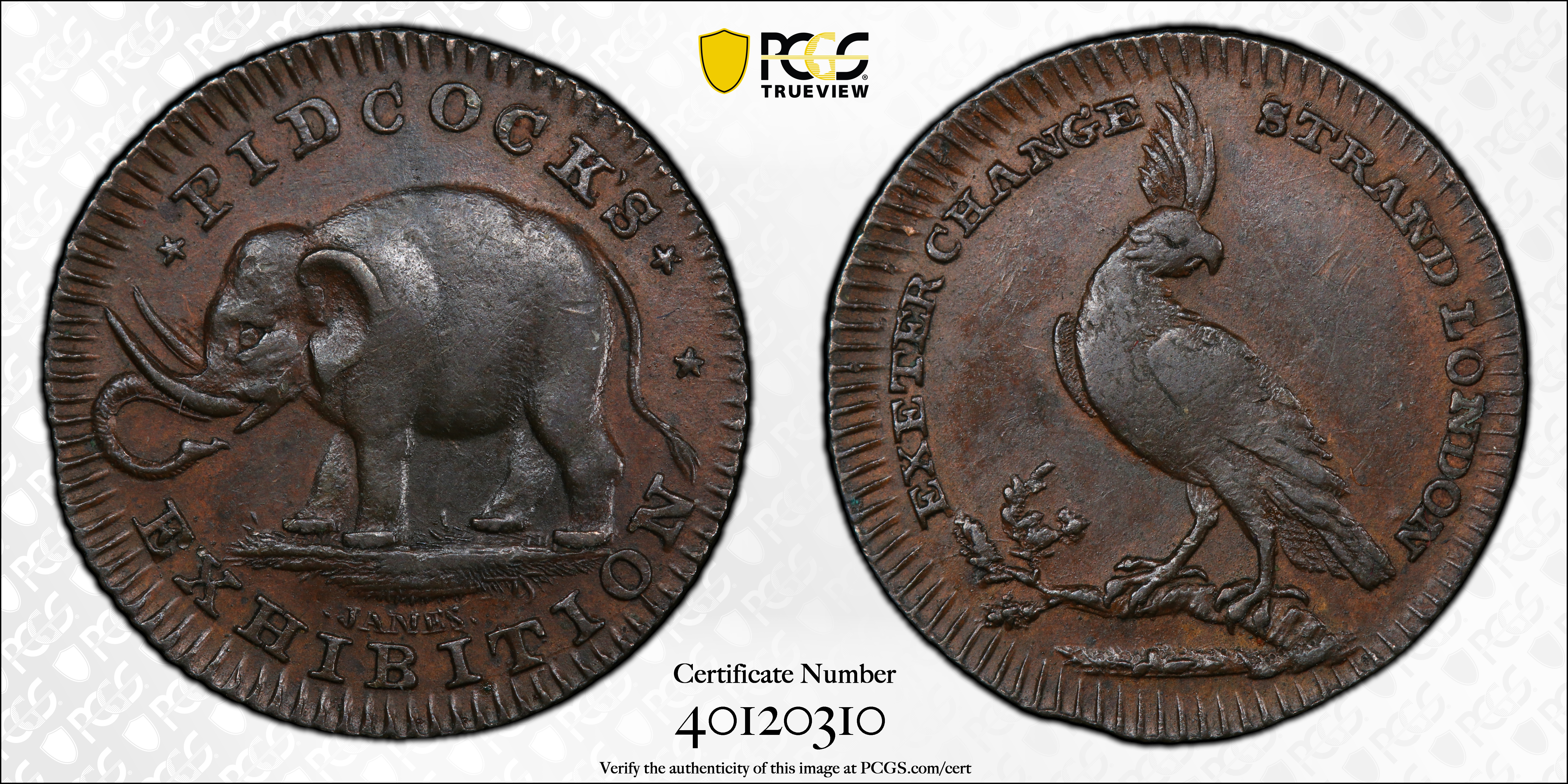(c.1790) Tk 1/4D DH-1067 Middlesex, Pidcock's, BN AU58BN 认证号40120310, PCGS号527265