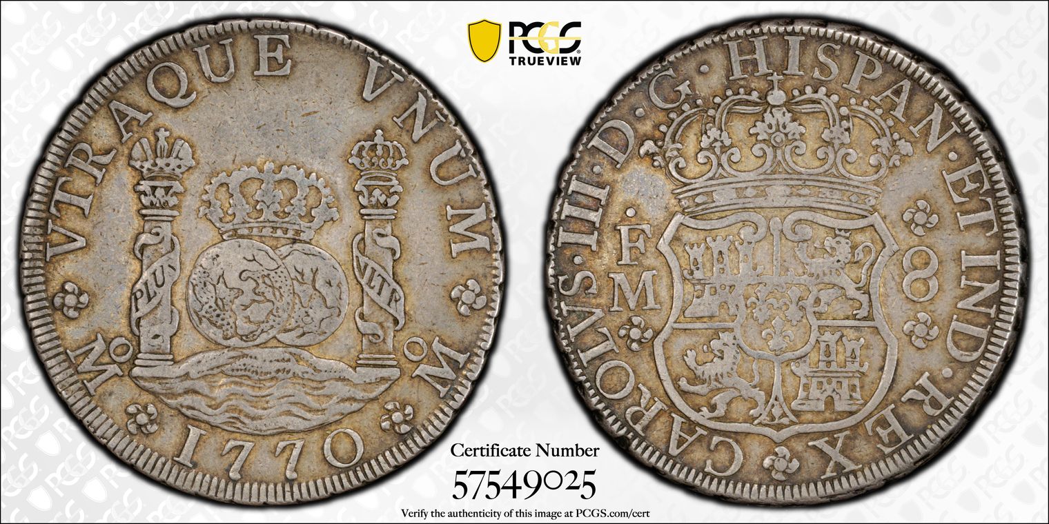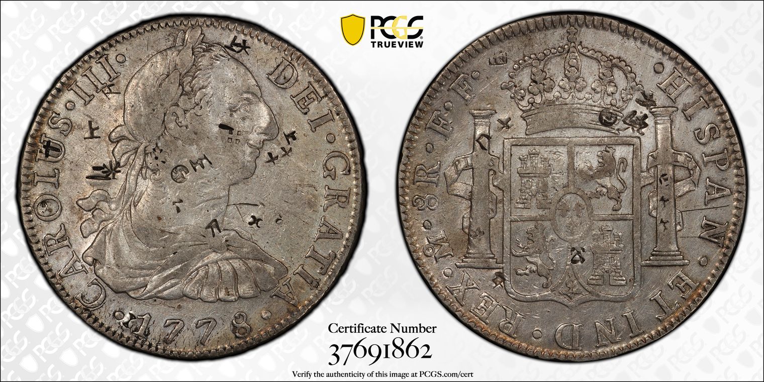8 Reales ("pieces of eight" or the original Spanish Dollar)
