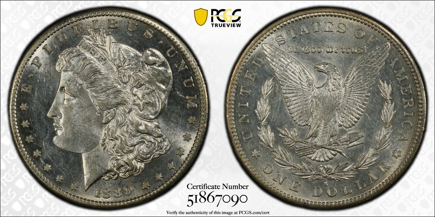 A lowly 62, but the luster, reverse lettering, and rim toning are just wow! for a Peace Dollar. This would be a gem if it were struck at 10 minutes after nine, instead of 10 minutes till five; fields are super clean. Mintage: 1,939,000