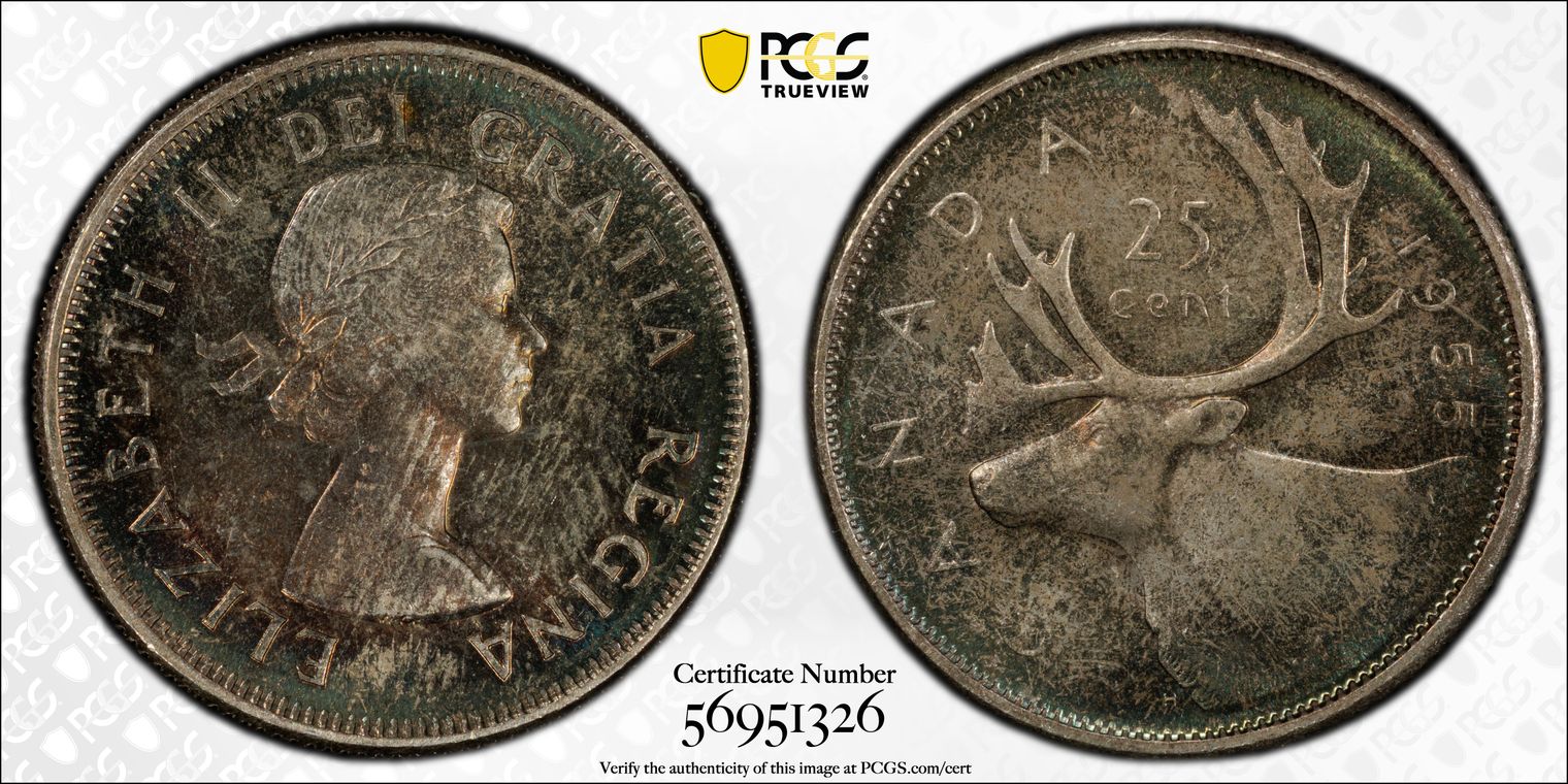 VICTORIA 1859 ‘GOTHIC HEAD’ FLORIN Brilliant canvas of blue green iridescent toning. Listed in SPINK as S3891 and ESC 817 (The English Silver Coinage From 1649) Rarity S Listed as B1 – Includes Victoria d:g: brit: reg: f:d: Obverse depicts date in Gothic numerals (mddccclix .) and WW below the bust (the engraver William Wyon’s initials), with 48 border trefoils and the reverse showing crowned cruciform shields; rose, thistle, rose and shamrock with a floriated cross in the centre in angles engraved by W. Dyce. Rev. A : Top cross does not touch border beads. SPINK’s 2011 catalogue values this at 575 GBP in UNC. PCGS Certificate No. 02347150 Graded MS-66