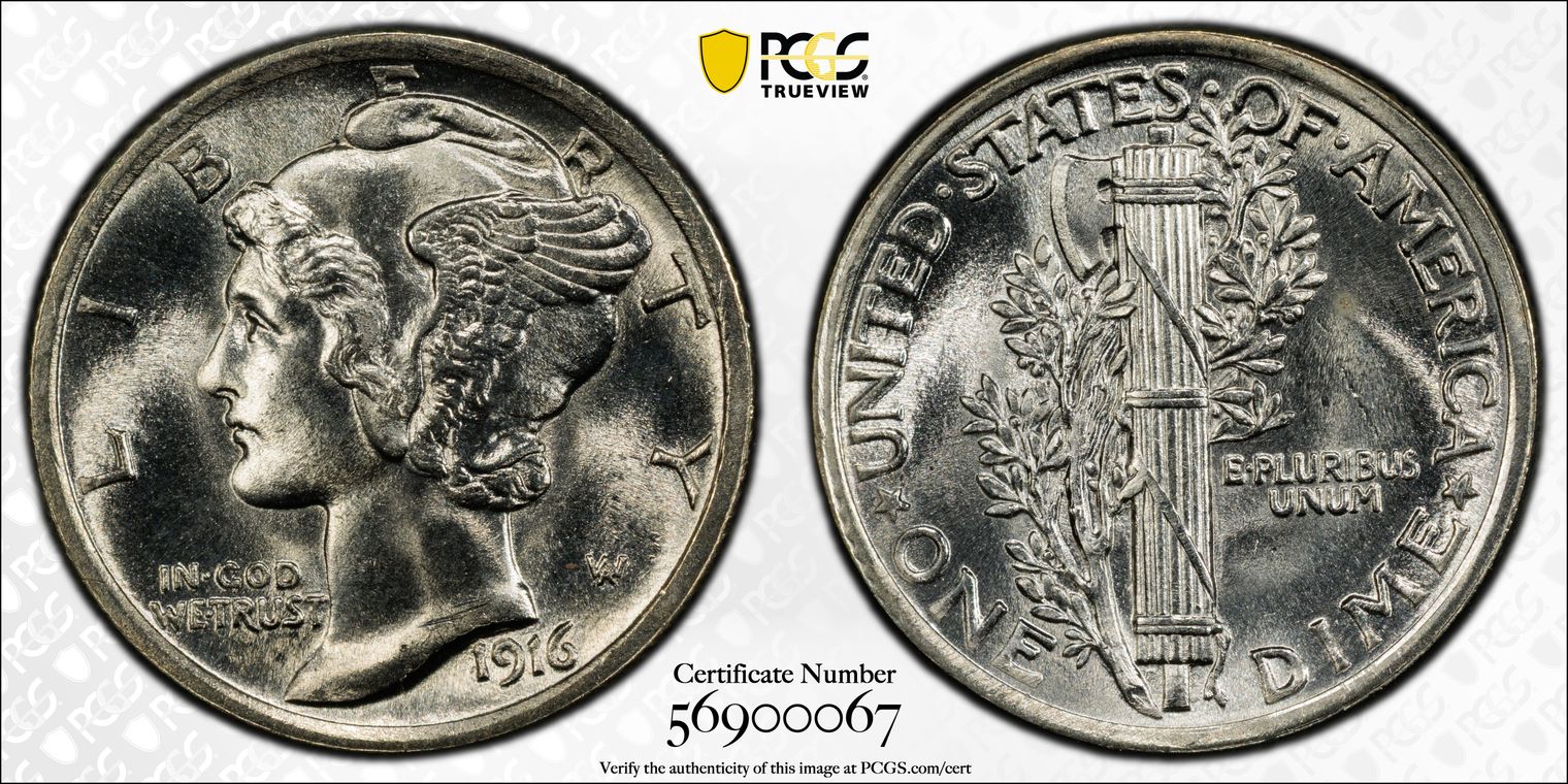 1916 10C Mercury MS65FB