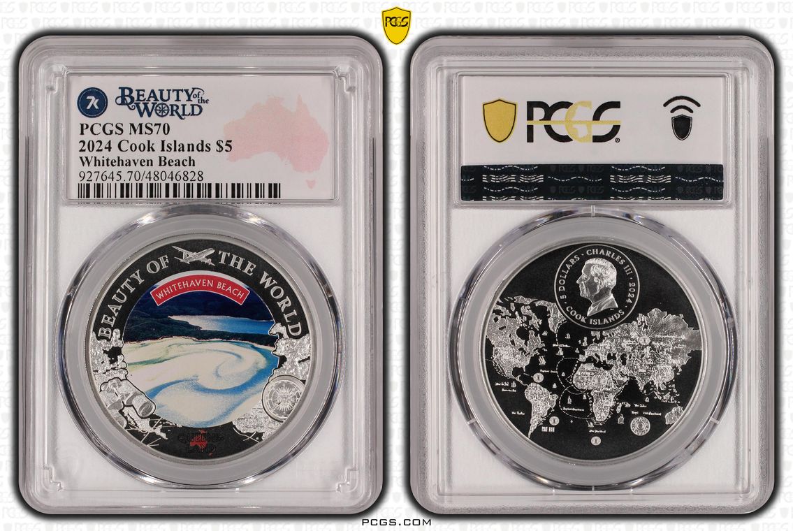 2024 $5 Whitehaven Beach Beauty of the World MS70