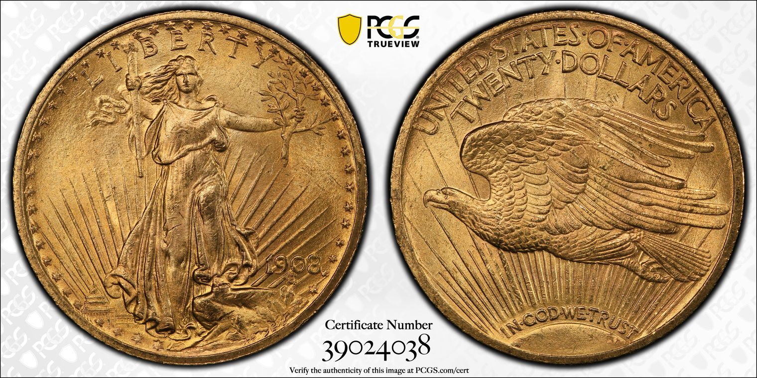 1908 $20 Motto MS64+