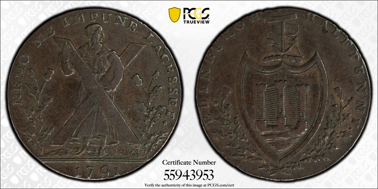 1790 Tk 1/2D DH-28 Lothian, Edinburgh MS65BN