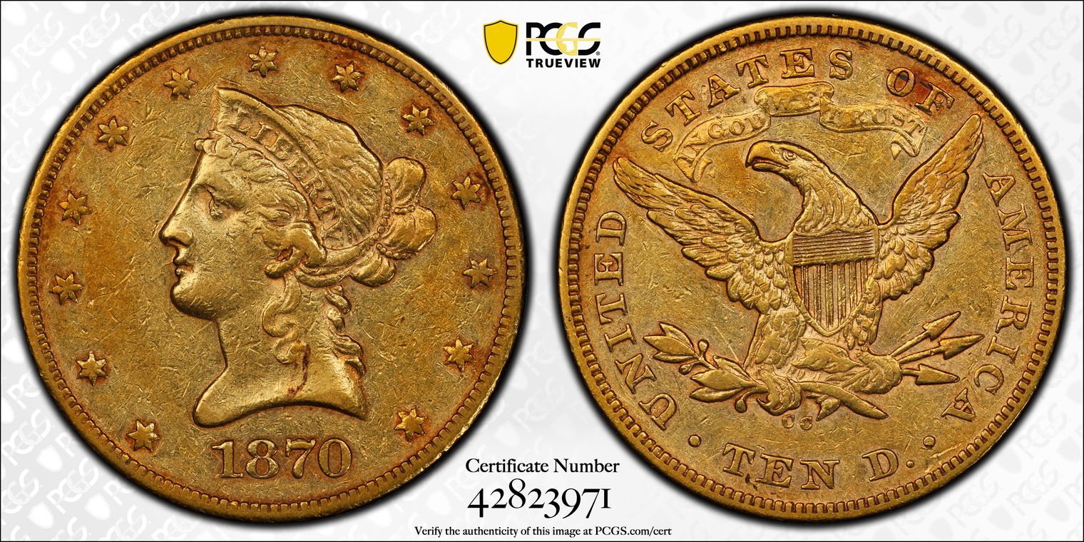 1872-CC $10 XF40