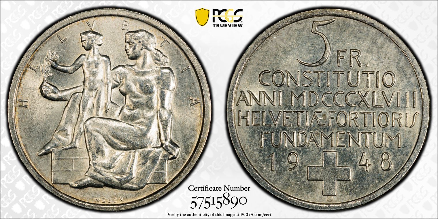 Swiss Silver Commemoratives 5 Francs, Circulation Strikes (1936-1963)