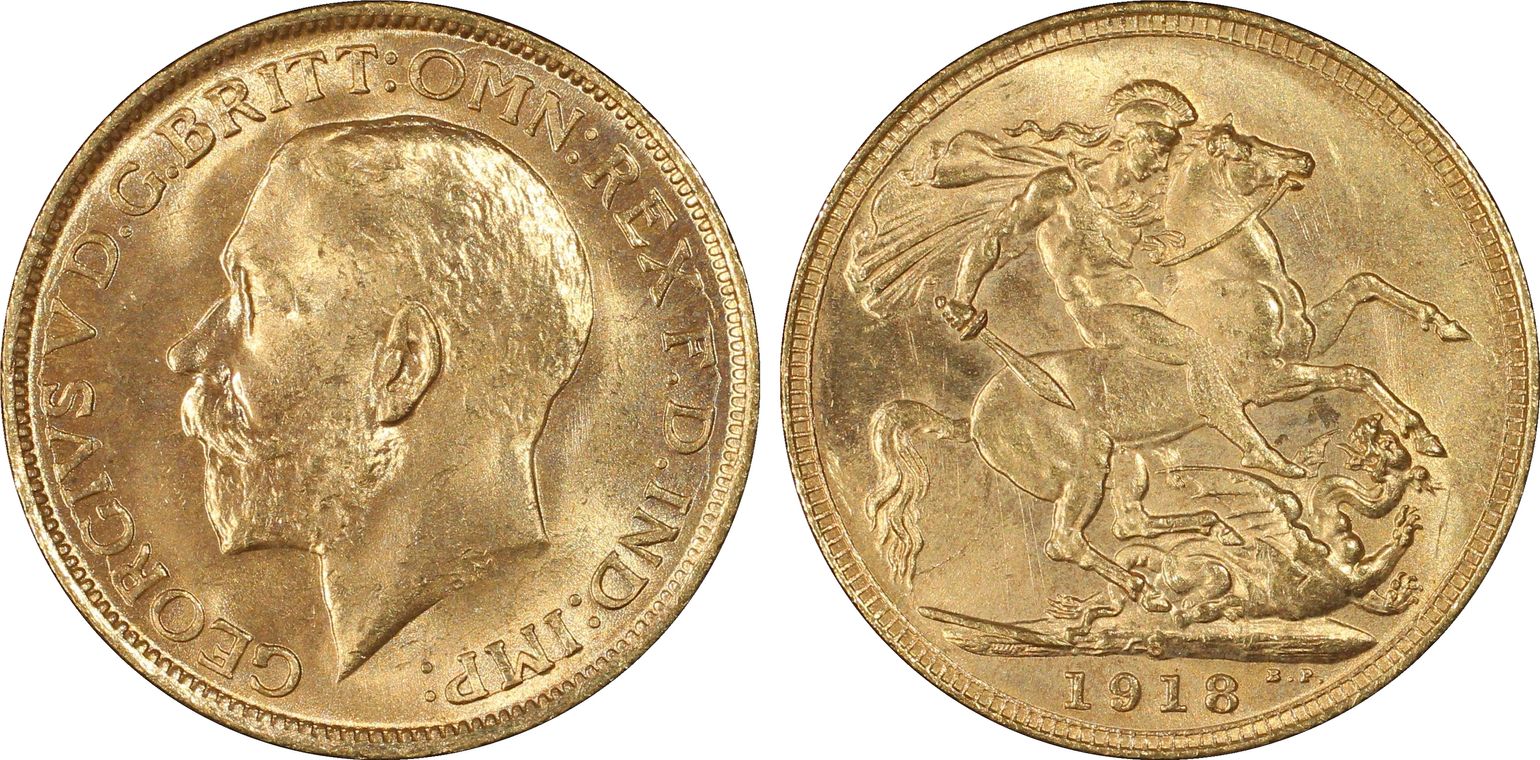 George V gold Sovereign 1914-P MS64 PCGS, Perth mint, KM29. The highest grade level for this type at PCGS, fields slightly dulled through tone but to no visual detriment. From the Caranett Collection of Sovereigns - #1 PCGS Registry Sets