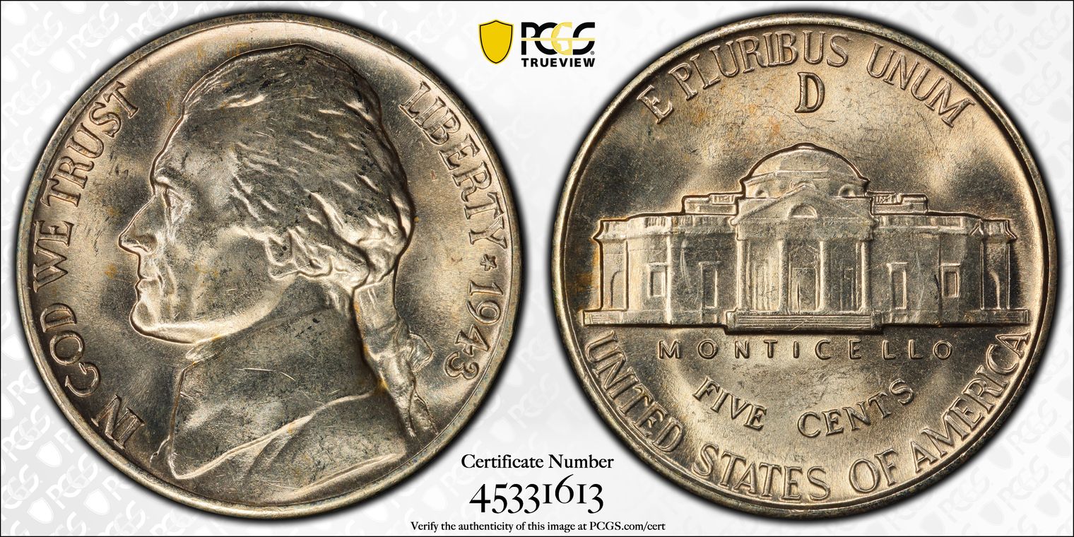 1943-D 5C MS64FS