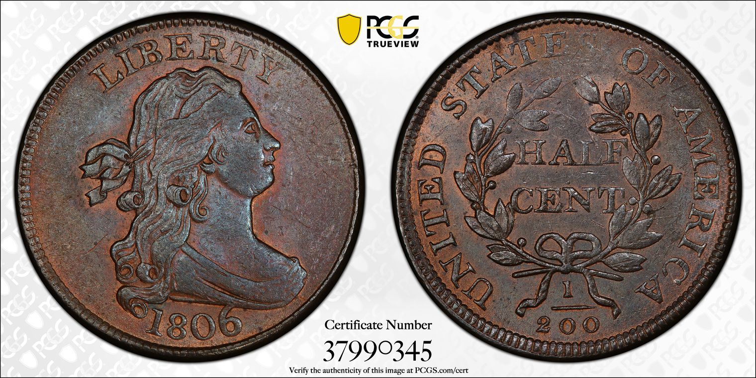 This wonderful short lived No Stars type. Splashes of amber-rose gold and cobalt-violet drape the fields on both sides, enlivened by a brilliant mint luster that glows around the smooth fields and sharply struck devices. The eye appeal is very high end.