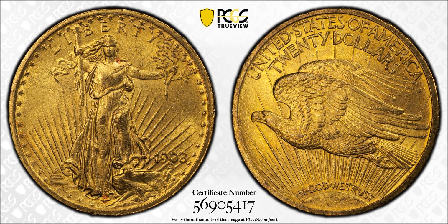 1908 $20 Motto MS62