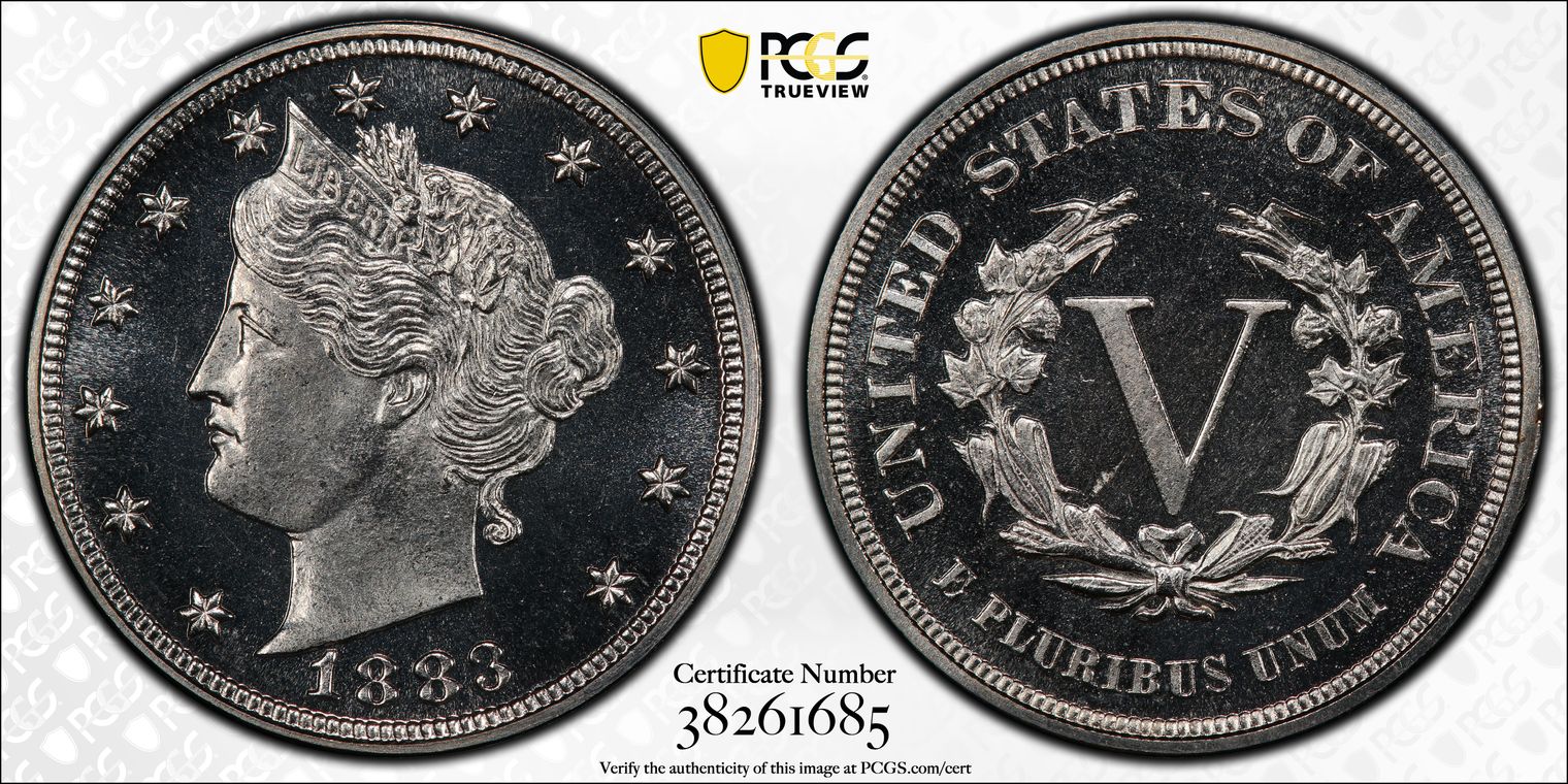 CAC - "The coin is beautifully preserved and well contrasted, with fields that are more deeply mirrored than usual for the Shield nickel type. Every detail is sharply brought up, and the coin is brilliant save for tinges of champagne warmth around the outer peripheries." Ex. The Bob R. Simpson Collection, Part II