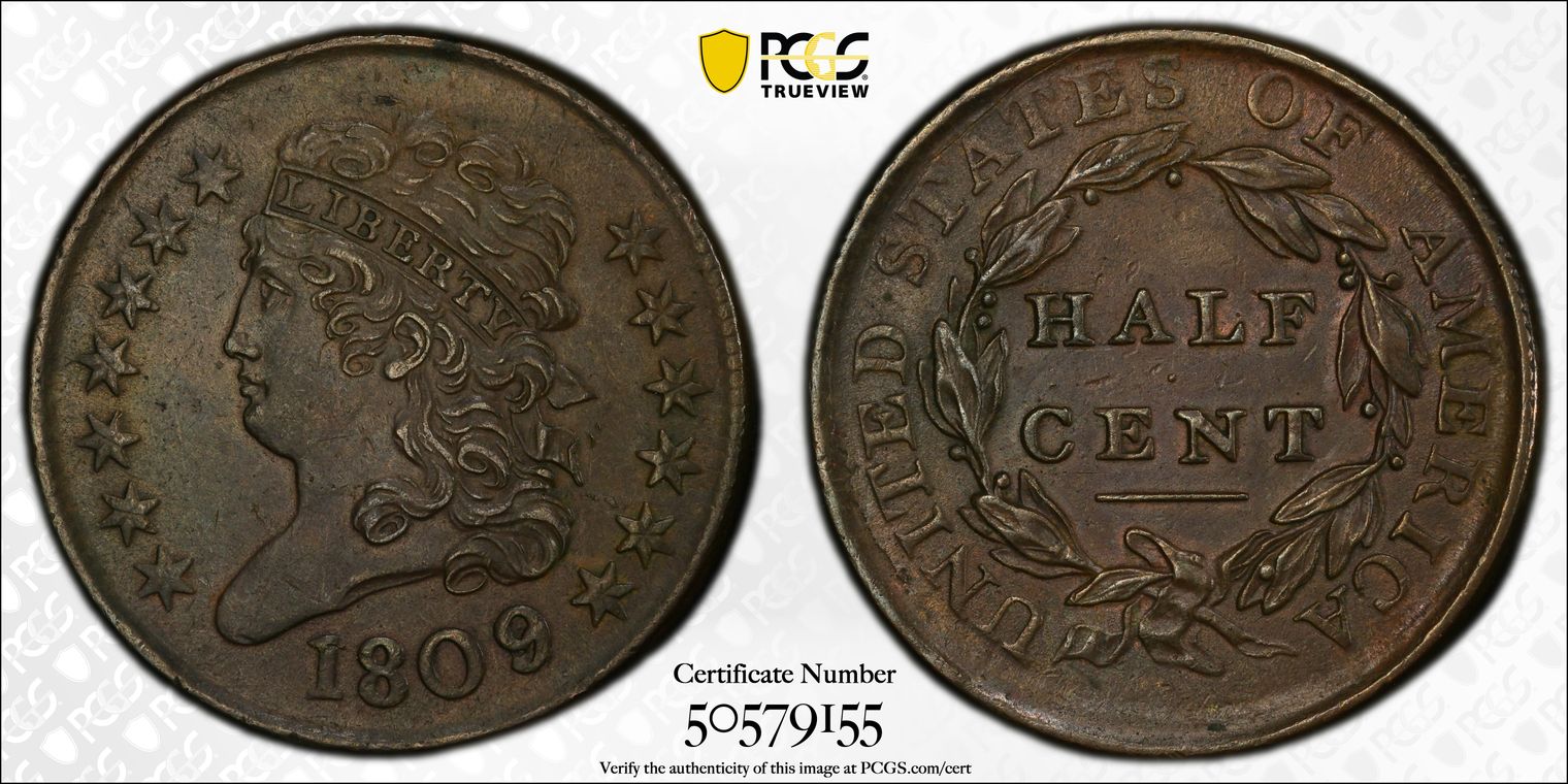 1809/6 1/2C C-5, 9 Over Inverted 9 AU53BN