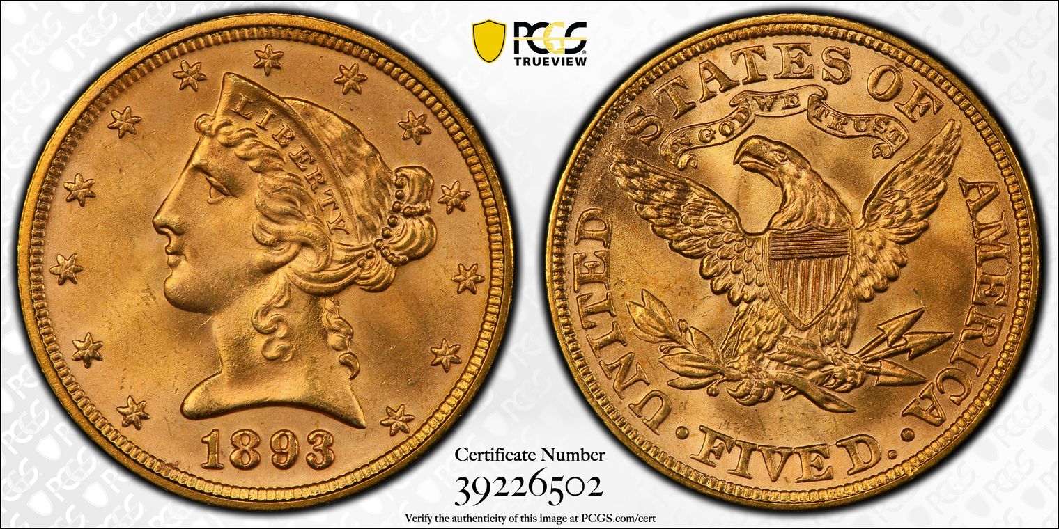 1893 $5 MS66
