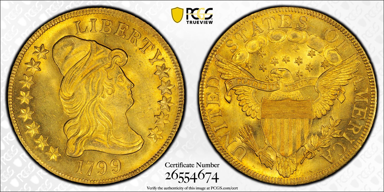 CAC - This pristine, virtually flawless Gem 1799 eagle features a generally bold strike.
