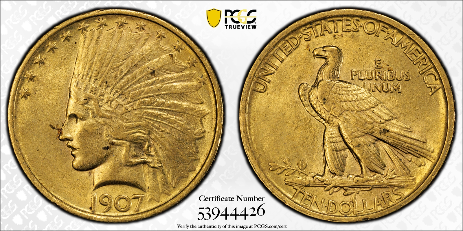 1907 $10 Indian AU55