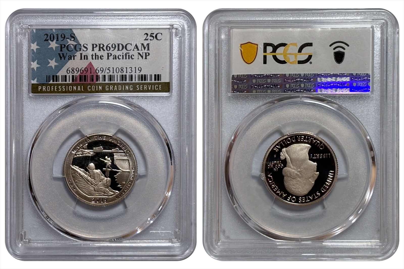 The 2019 War in the Pacific National Historical Park Quarter was the third release of 2019 and the 48th overall issue in the America the Beautiful Quarters Program. The obverse features the classic portrait of George Washington, first introduced in 1932. The reverse depicts American forces coming ashore at Asan Bay, strengthening the number of troops on the island in the fight for Guam and its eventual liberation. The inscriptions include War in the Pacific, Guam, 2019, and E Pluribus Unum.