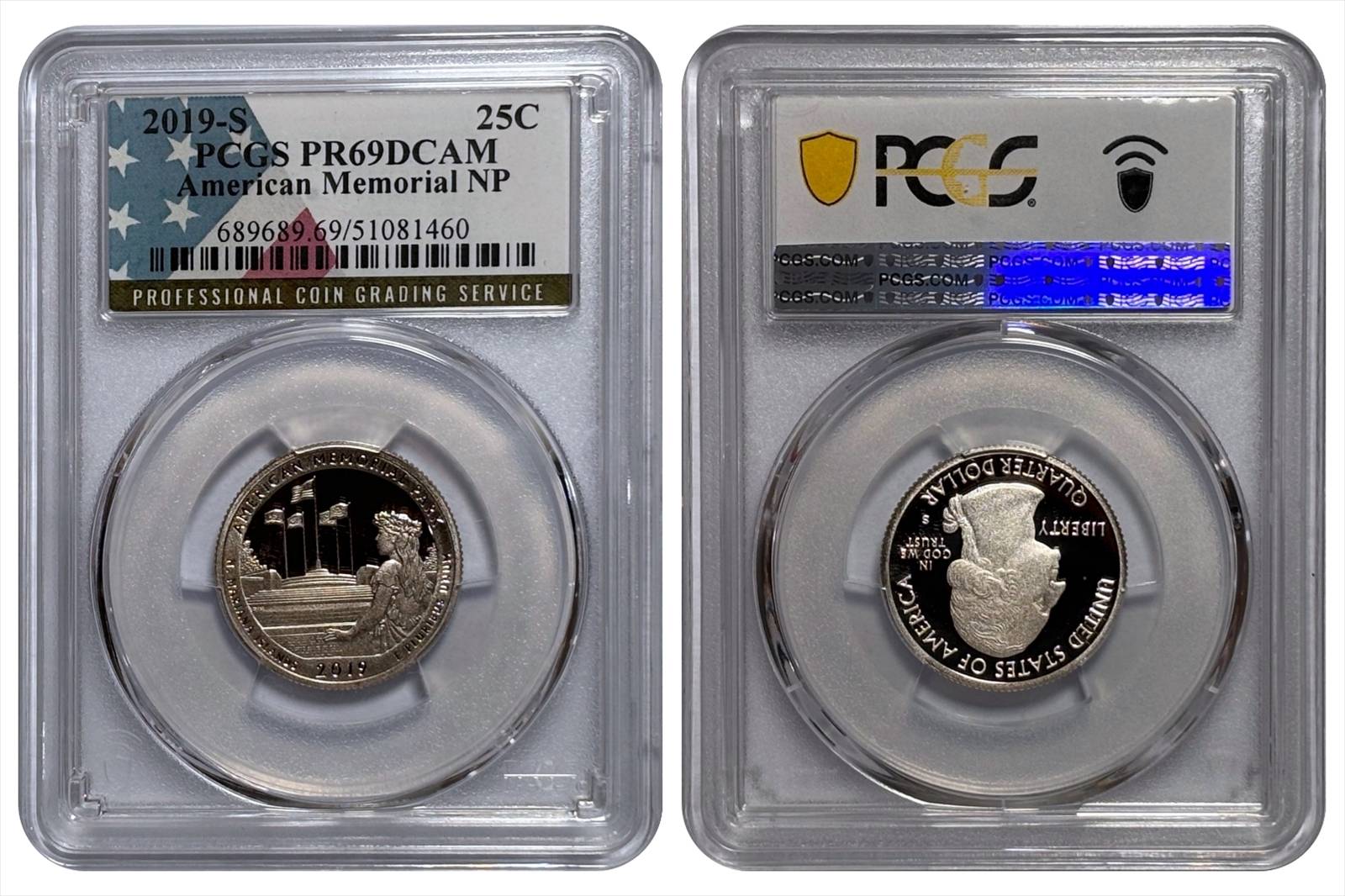 The 2019 American Memorial Park Quarter was the second release of 2019 and the 47th overall issue in the America the Beautiful Quarters Program. The obverse features the classic portrait of George Washington, first introduced in 1932. The reverse depicts a young woman in traditional attire at the front of the Flag Circle and Court of Honor, resting her hand on a plaque honoring those who died in the Marianas Campaign of World War II. The inscriptions include American Memorial Park, Northern Mariana Islands, 2019, and E Pluribus Unum.