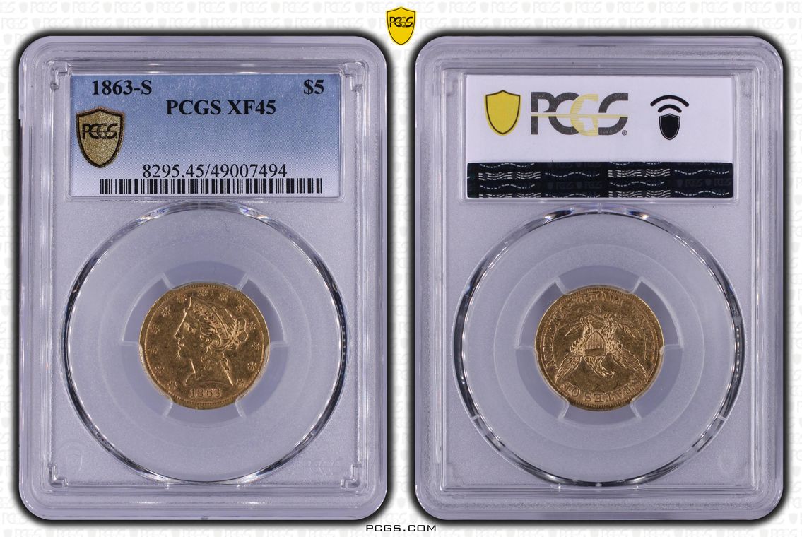 1863-S $5 XF45
