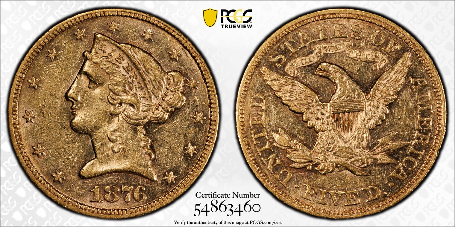 1876 $5 AU55