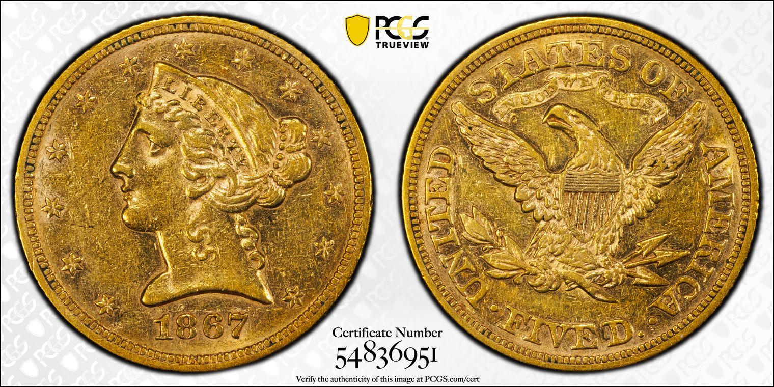 1867 $5 AU53