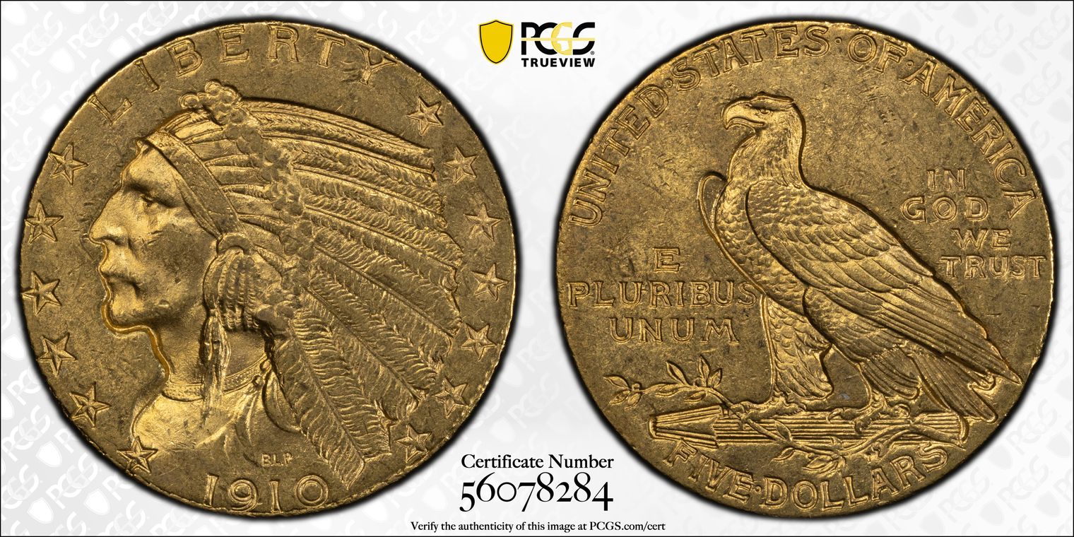 1910 $5 MS62