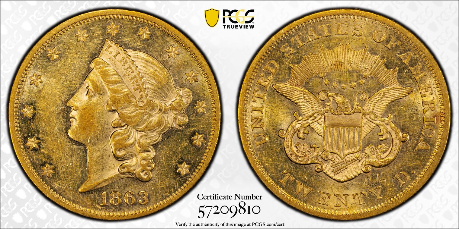 1863 $20 AU58