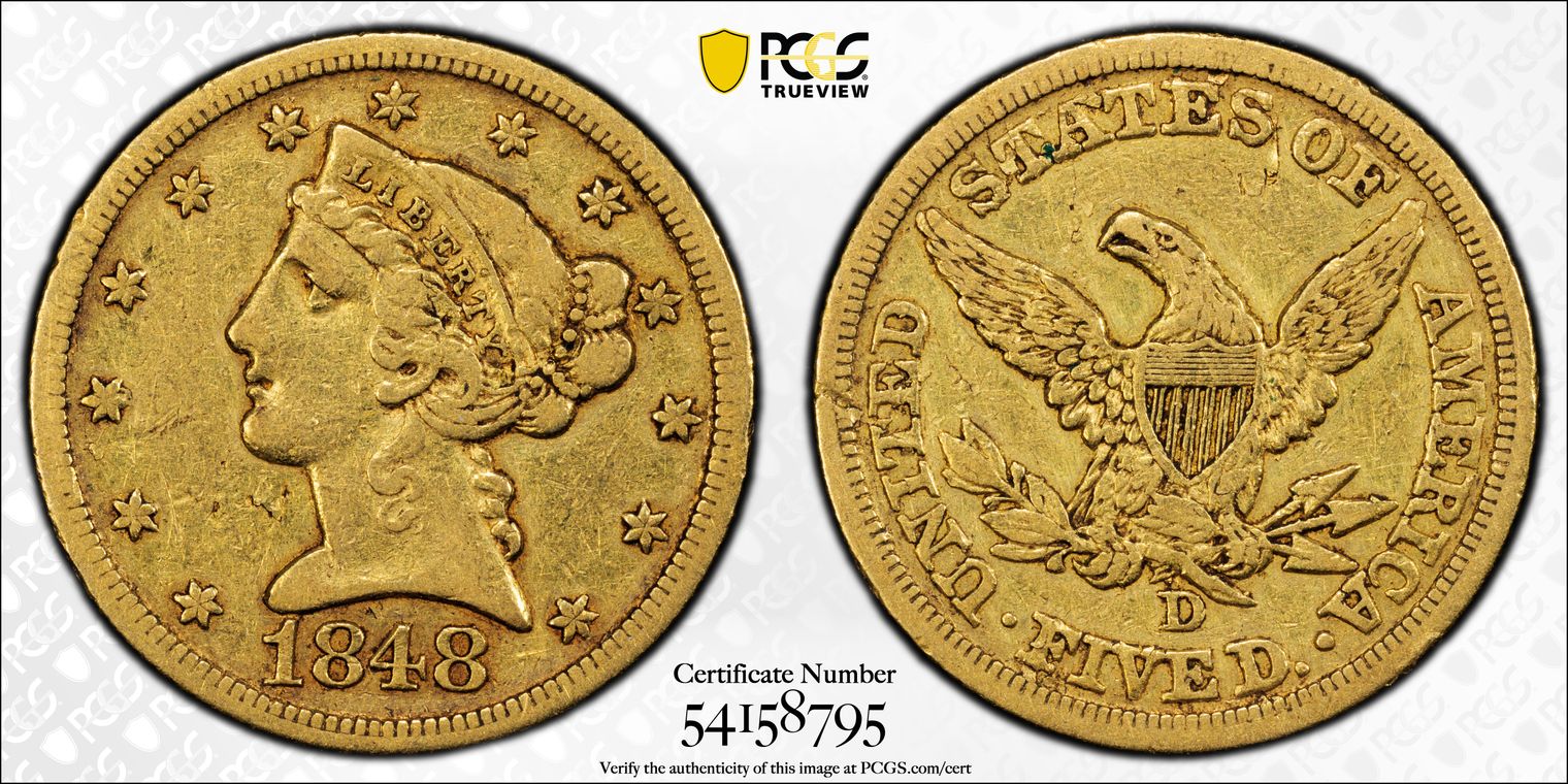 1848-D $5 VF35