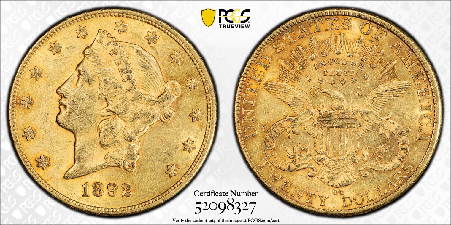 1892-CC $20 AU58
